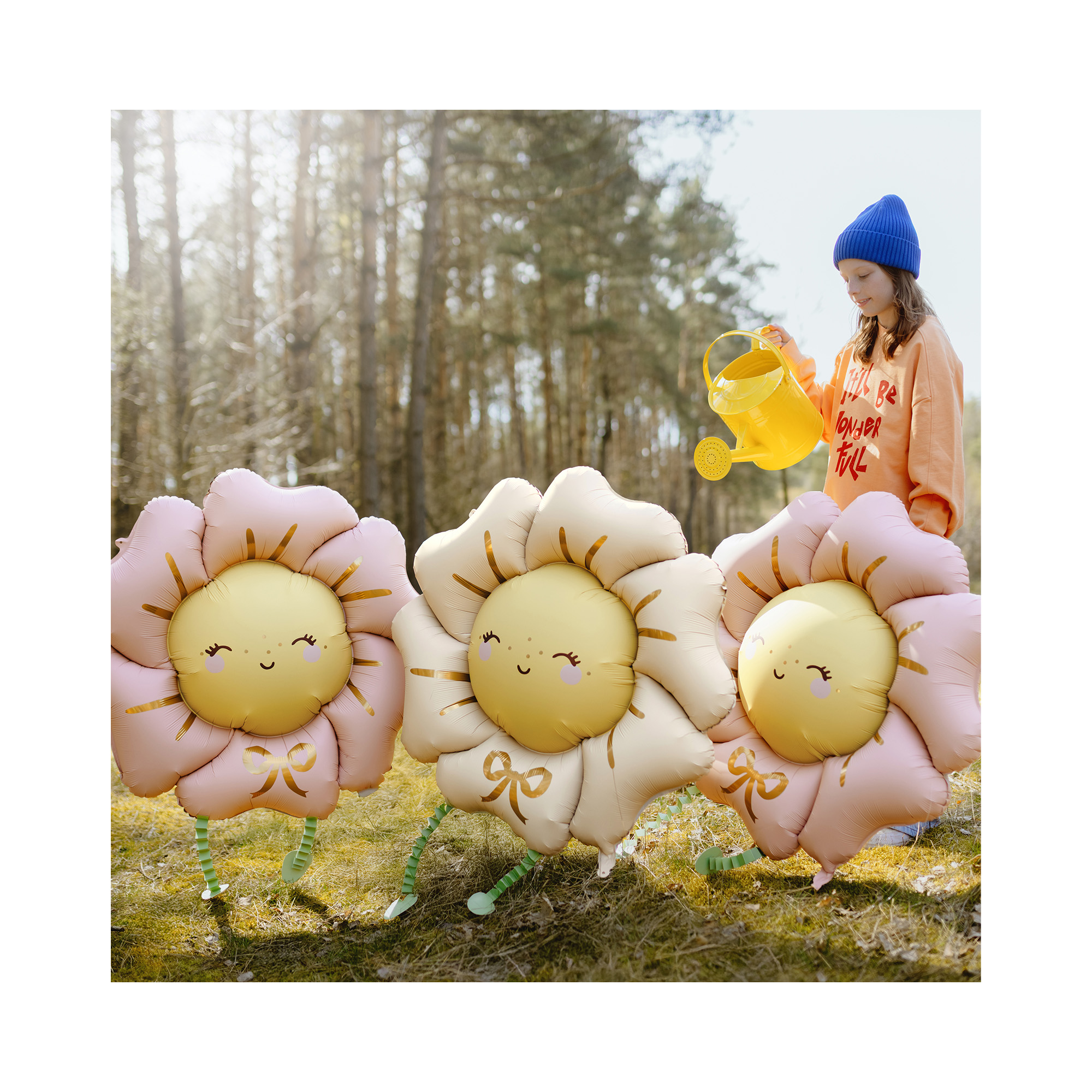 Chodící fóliový balónek ve tvaru roztomilé světle růžové květiny je skvělou volbou pro originální výzdobu i zábavu na dětské párty nebo tematické narozeninové oslavě. Balónková květina je laděná do světlých pastelových barev, je ozdobená veselým obličejem, zlatými detaily a má připevněné papírové nožičky. Nechte balónek volně pobíhat po zahradě, nebo ho využijte jako zábavný prvek pro děti. Přivažte k němu provázek a nechte děti, aby se s ním procházely. Pro další párty doplňky a dekorace s květinovým motivem můžete navštívit naši tematickou sekci Jaro a květiny. Rozměry: 80 × 80 cm po nafouknutí (104 × 104 cm před nafouknutím), výška nožiček je 40 cm Materiál: fólie Balení obsahuje: 1 ks balónku s nožičkami a brčko pro snadné nafouknutí Balónky je možné nafukovat vzduchem i heliem. Pro docílení "chodícího efektu" je třeba nafouknout heliem.