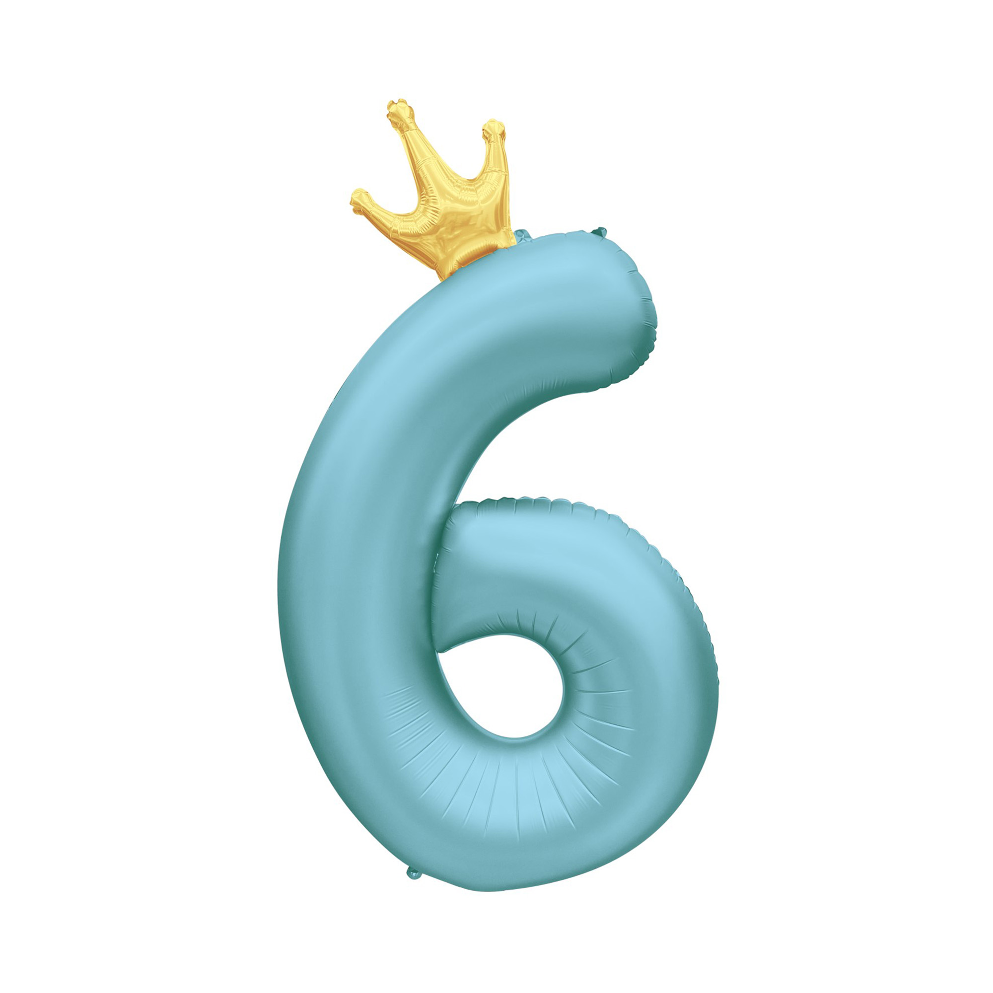 Balónek fóliový 82 cm světle modrý s korunkou číslo 6 Albi