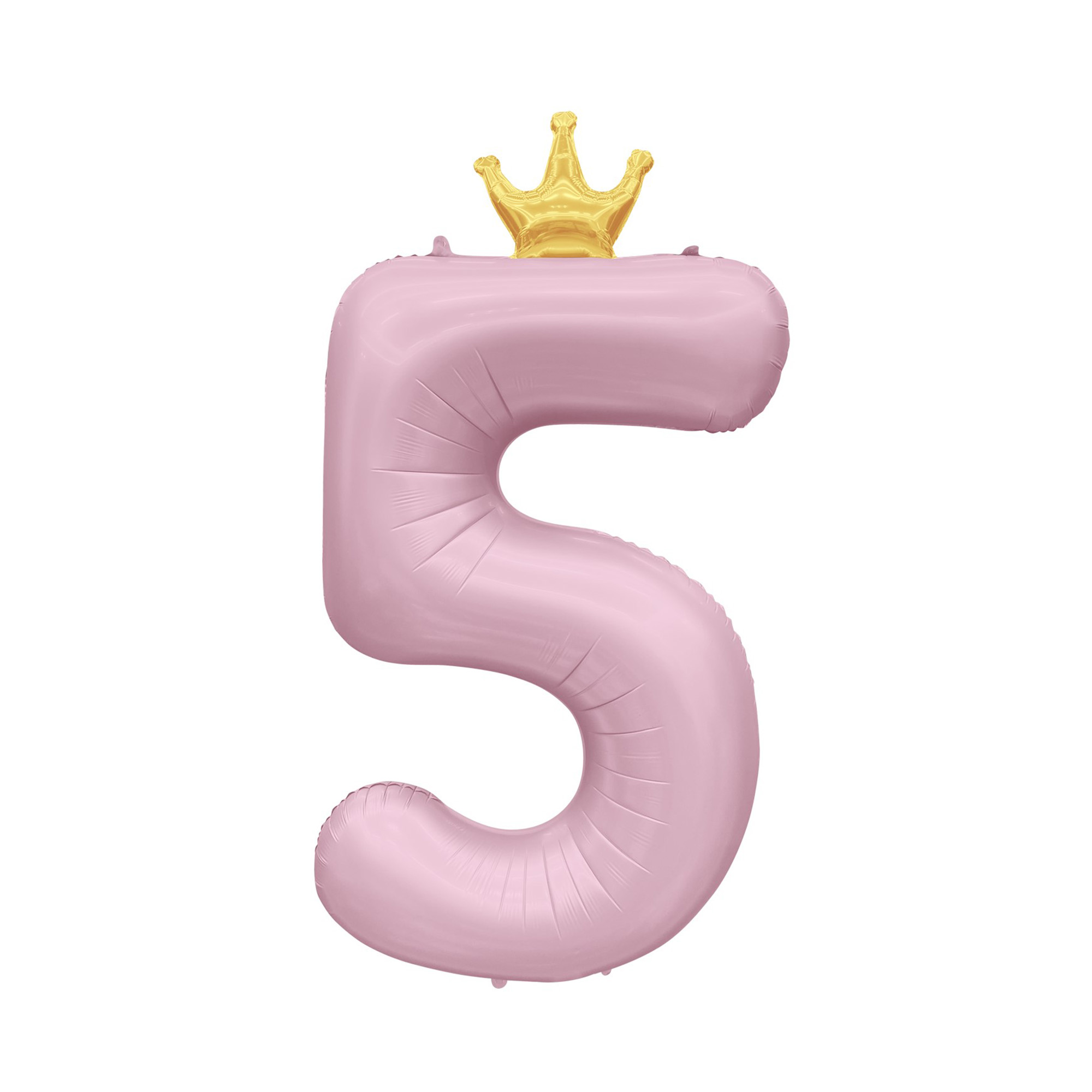Balónek fóliový 82 cm světle růžový s korunkou číslo 5 Albi