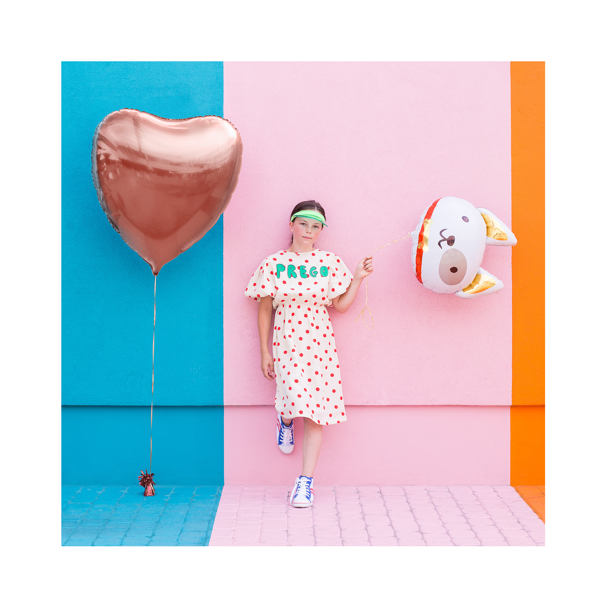 Fóliový balónek ve tvaru hlavy pejska je ideální jako veselá výzdoba dětské narozeninové oslavy nebo tematické párty. Balónek je laděný do bílé, černé a červené barvy se zlatými detaily. Další párty doplňky a dekorace v psím motivu najdete v sekci Zvířátka. Rozměry: 45 × 50 cm (rozměr po nafouknutí) Materiál: pevná fólie Balení obsahuje: 1 ks fóliového balónku Balónek je možné nafukovat vzduchem i heliem.