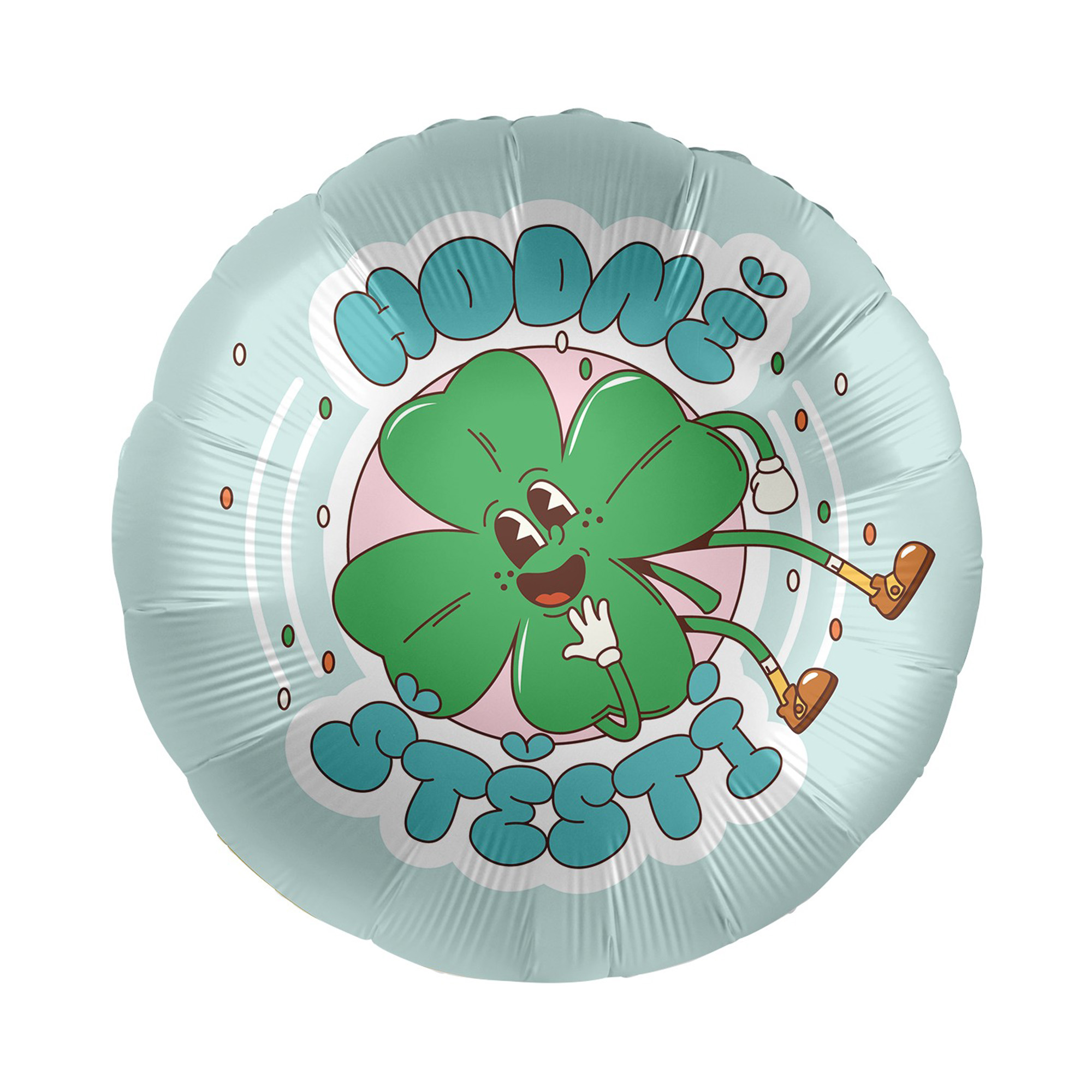 Kulatý fóliový balónek s motivem čtyřlístku a přáním je krásný a originální způsob, jak popřát hodně úspěchů. Tento balónek je laděný do modré a zelené barvy s potiskem čtyřlístkového panáčka a nápisu "Hodně štěstí". Velikost/rozměr: 17" – 43 cm Materiál: fólie Balení obsahuje: 1 ks balónku Balónek je možné nafukovat vzduchem i heliem.