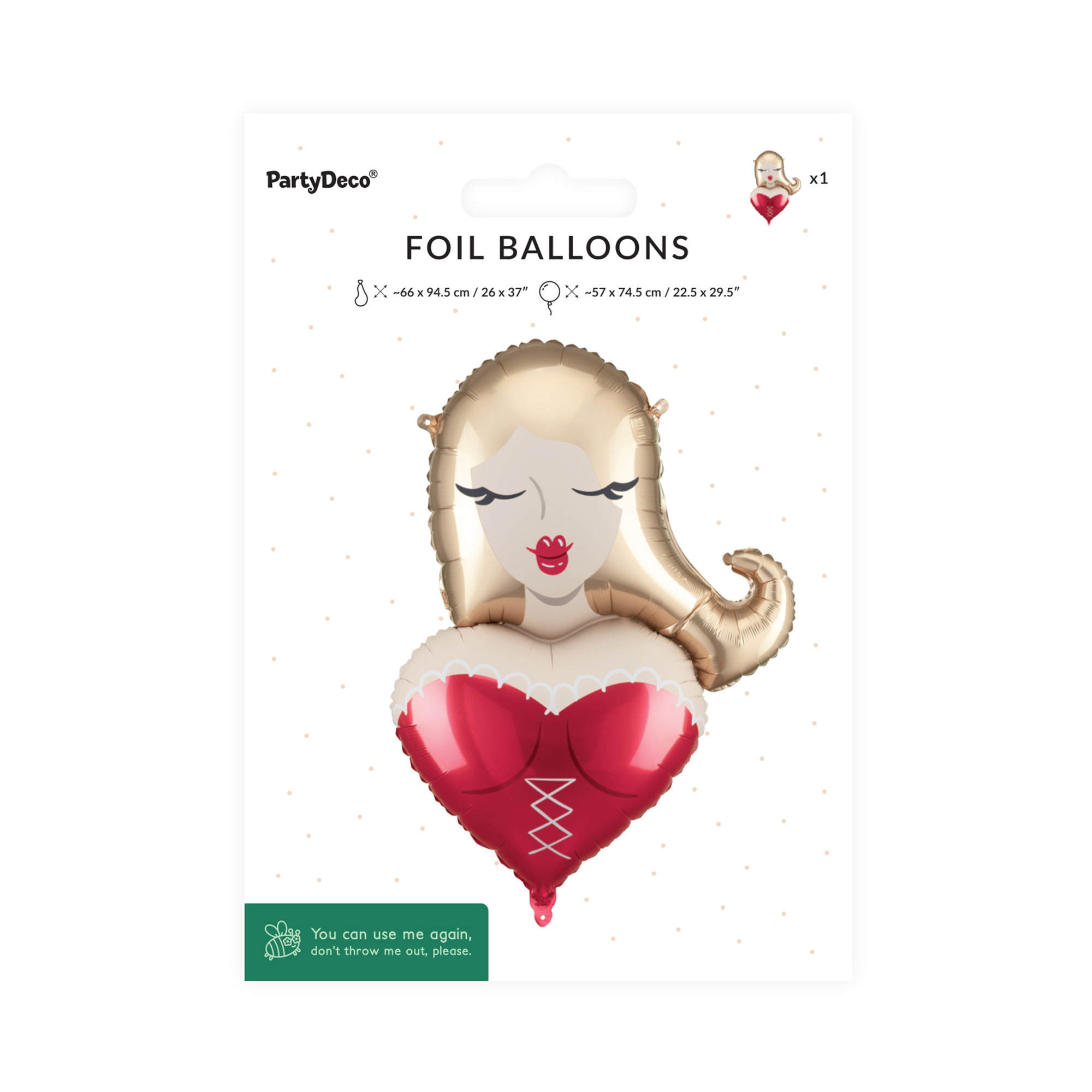 Velký fóliový balónek ve tvaru dívky se zlatými vlasy a červeným korzetem vtipně a originálně doplní výzdobu ženské i pánské rozlučkové párty. Výrazný balónek můžete využít jako dominantu balónkové dekorace nebo jako rekvizitu do párty fotokoutku. Další rozlučkové doplňky a dekorace najdete v naší kategorii Svatba a rozlučka. Rozměry: 57 × 74,5 cm po nafouknutí (66 × 94,5 cm před nafouknutím) Materiál: pevná fólie Balení obsahuje: 1 ks balónku a brčko pro snadné nafouknutí Balónek je možné nafukovat vzduchem i heliem.