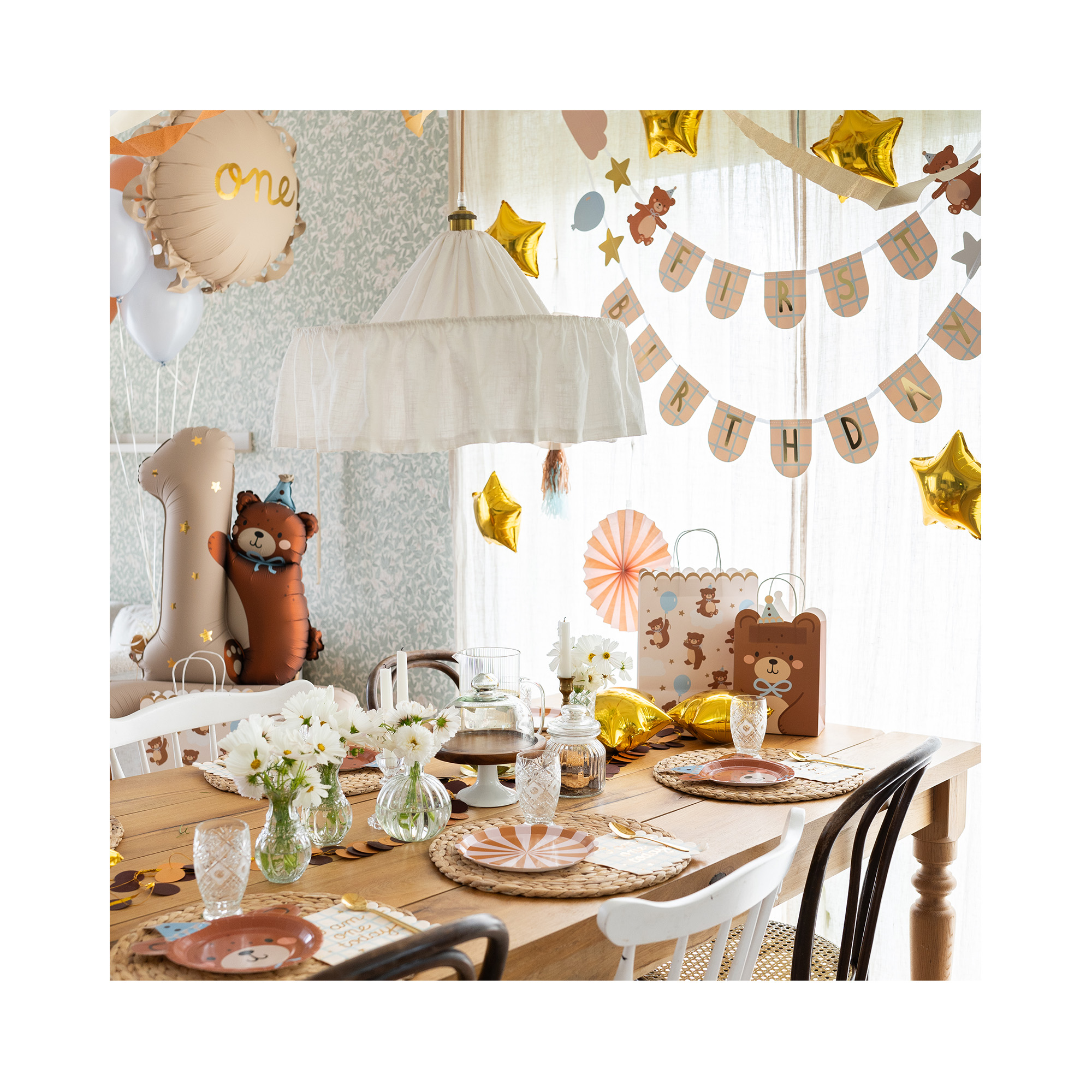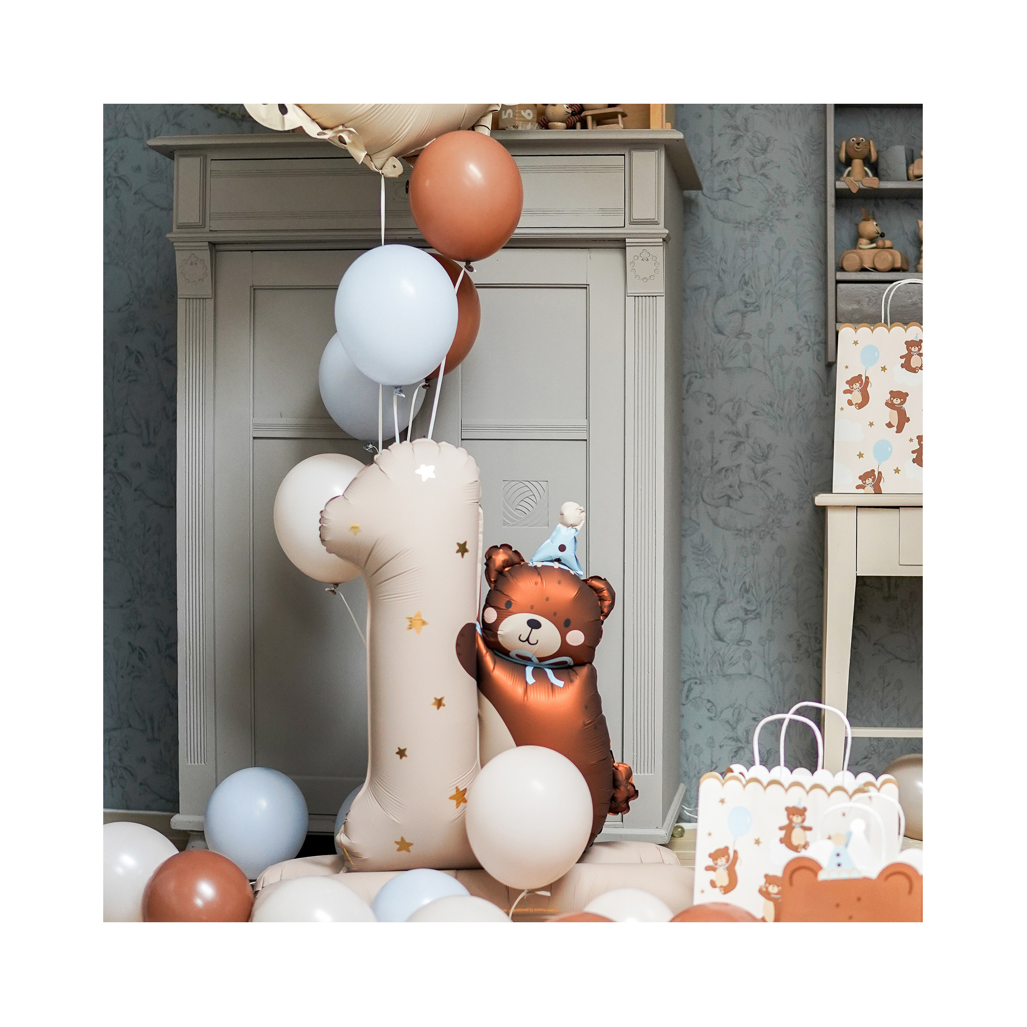 Stojící fóliový balónek ve tvaru roztomilého medvídka a číslice jedna je vhodný při oslavě prvních narozenin miminka. Tento stojící balónek se dobře hodí i jako nepřehlédnutelné pozadí párty fotokoutku. Medvědí balónek můžete kombinovat s dalšími párty dekoracemi a doplňky ve stejném motivu. Pro inspiraci můžete prozkoumat kategorie 1. narozeniny kluk a 1. narozeniny holka nebo Zvířátka. Velikost/rozměr: 81 × 72 cm Materiál: fólie Balení obsahuje: 1 ks balóku a brčko pro snadné nafouknutí balónku Balónek je možné nafukovat pouze vzduchem.
