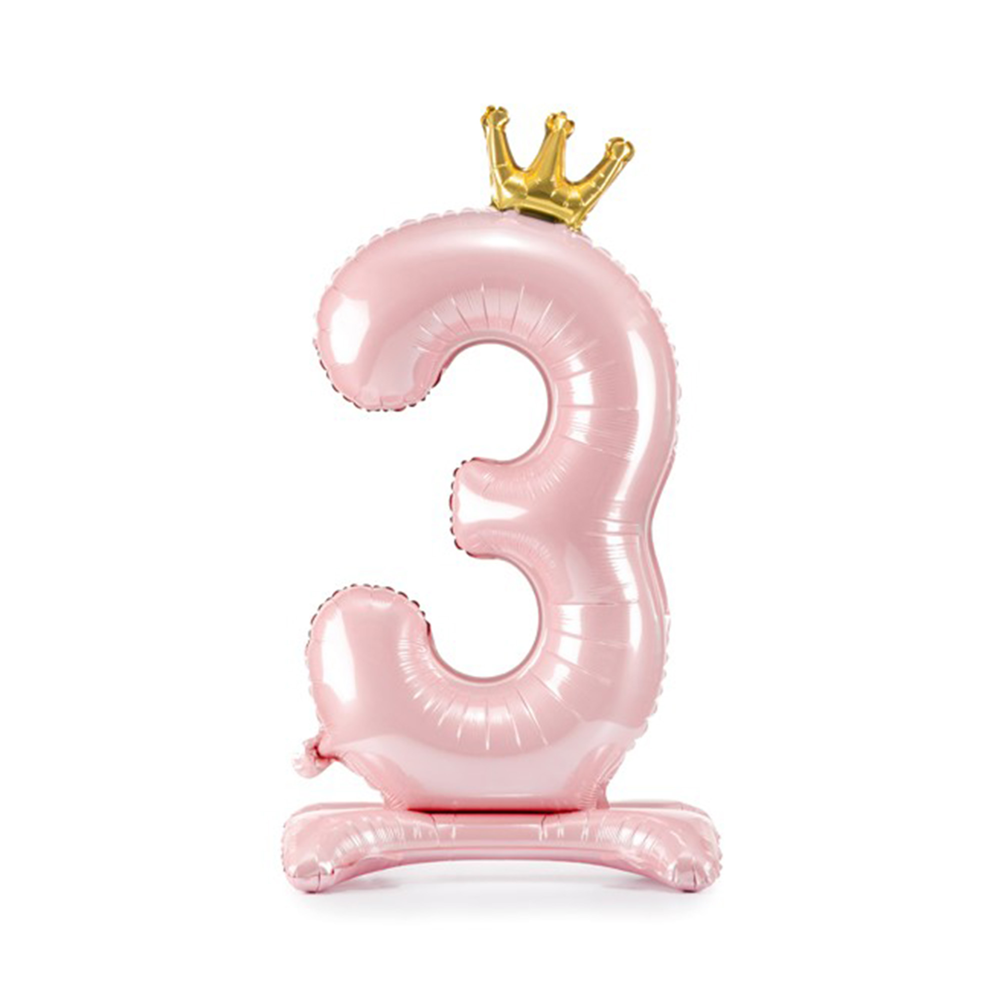 Balónek fóliový Stojící číslo s korunkou růžová 84 cm – Číslice 3 Albi
