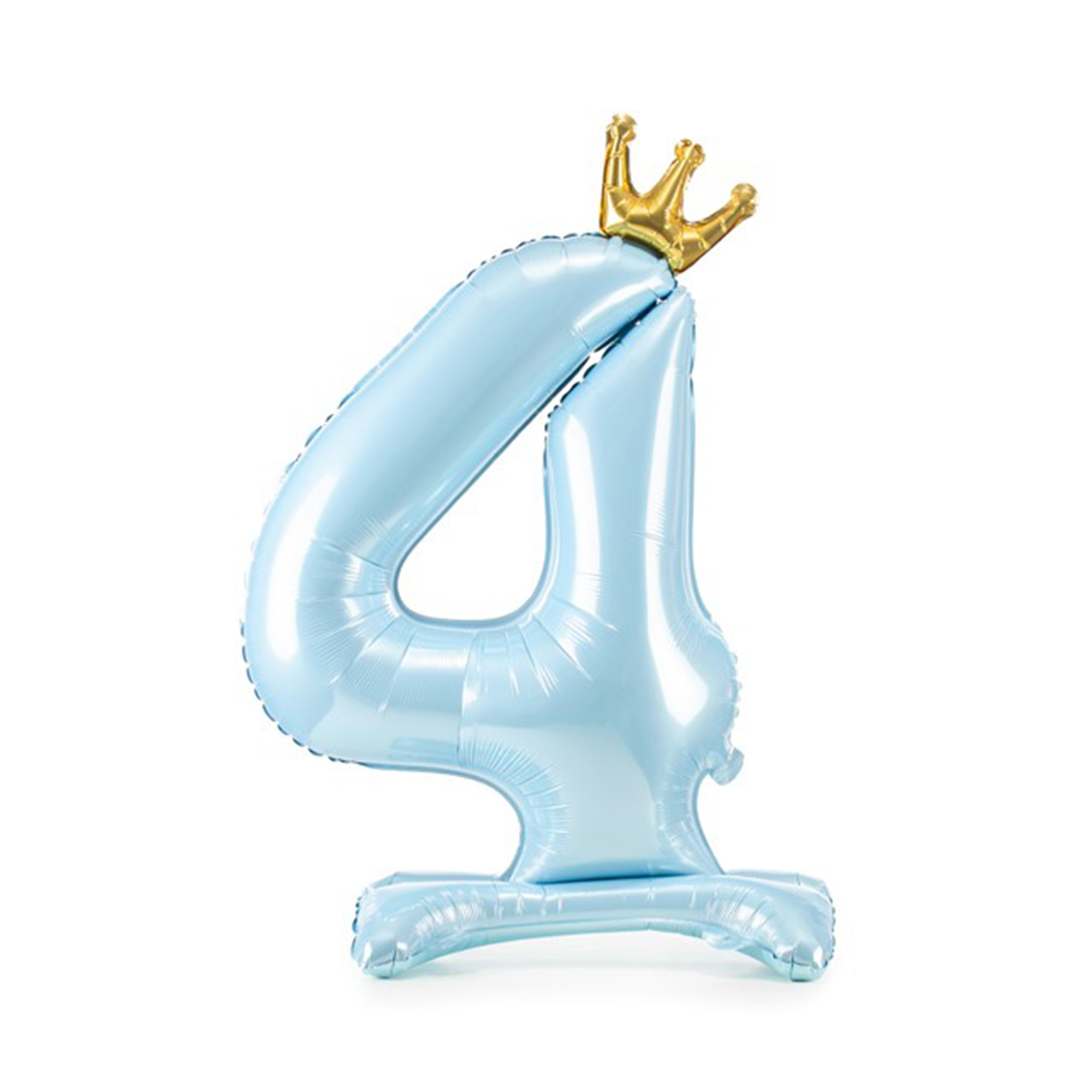 Balónek fóliový Stojící číslo s korunkou světle modrá 84 cm – Číslice 4 Albi