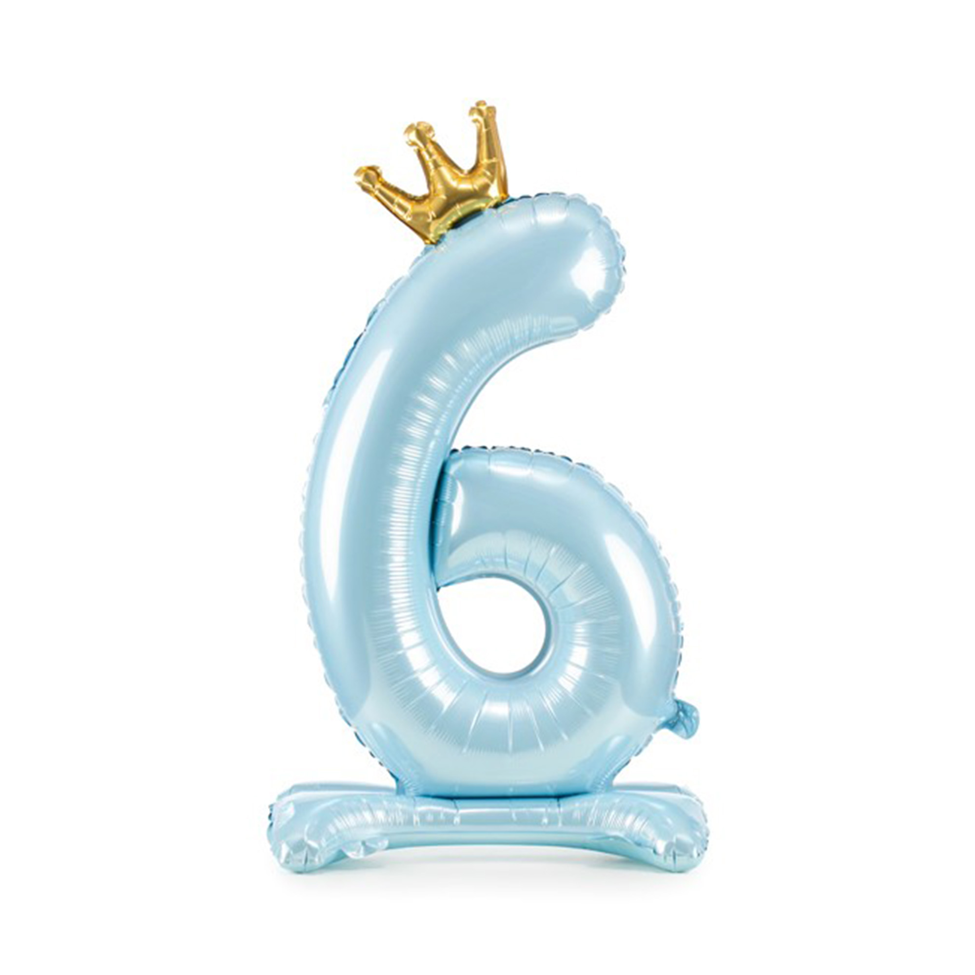 Balónek fóliový Stojící číslo s korunkou světle modrá 84 cm – Číslice 6 Albi