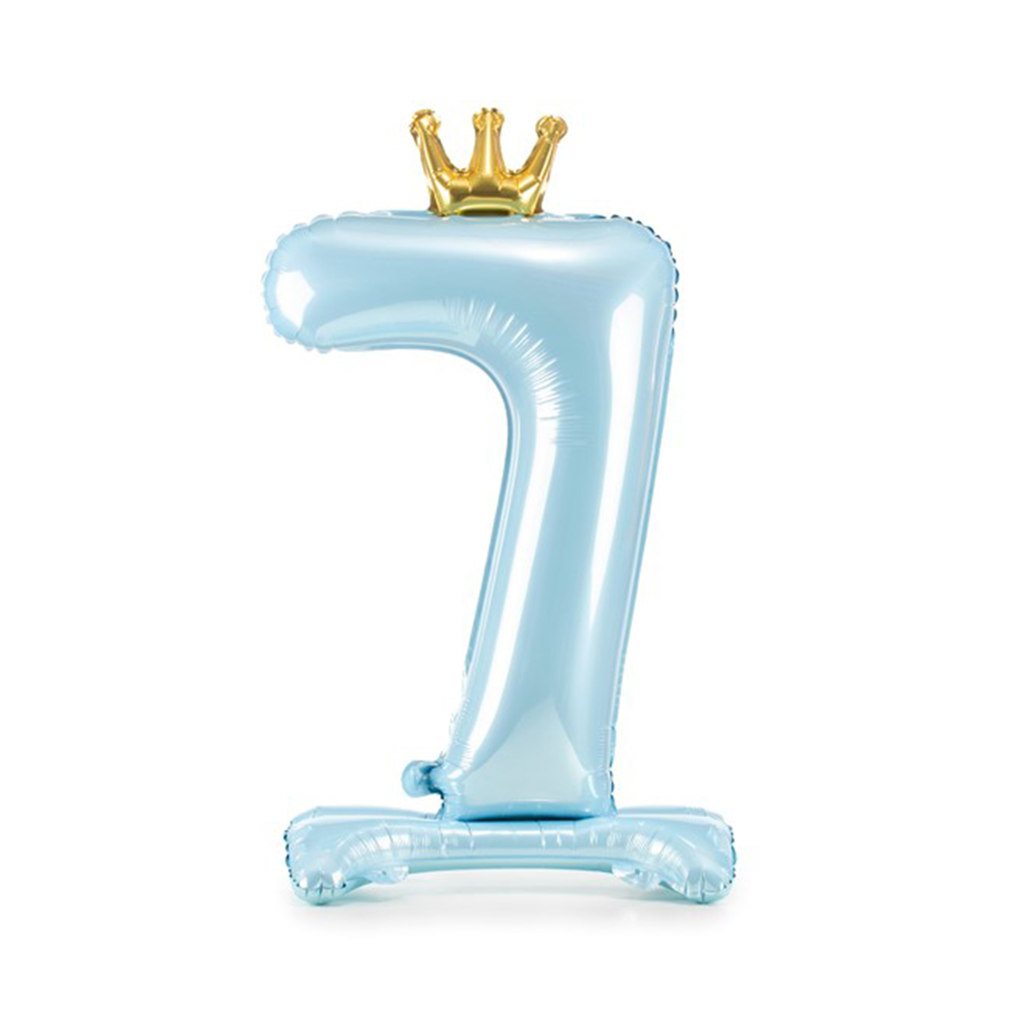 Balónek fóliový Stojící číslo s korunkou světle modrá 84 cm – Číslice 7 Albi