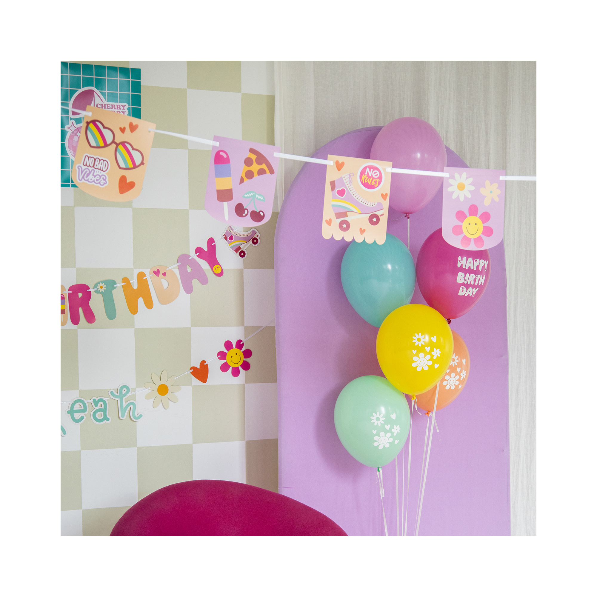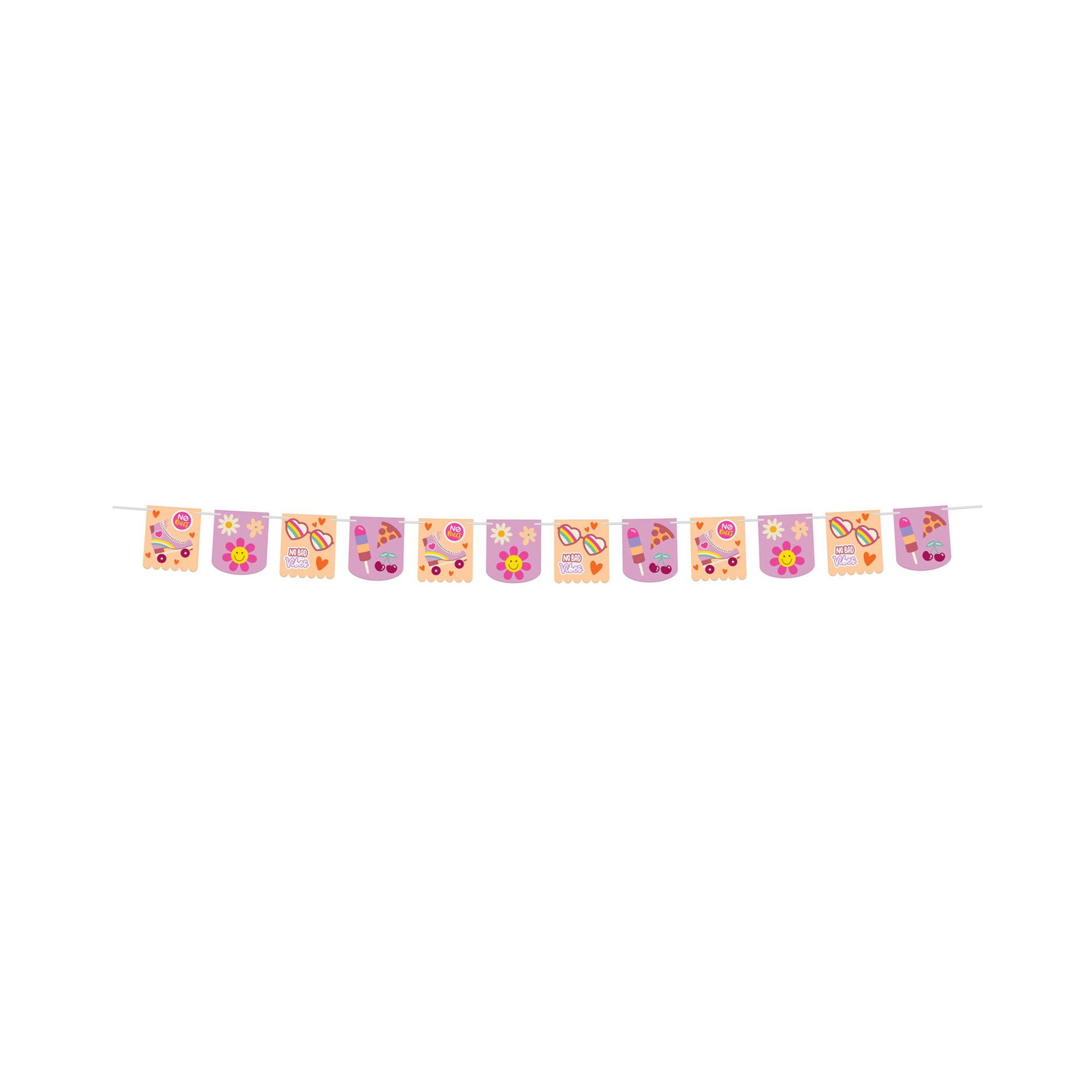 Banner v broskvové a růžové barvě s veselým vzorem Boho Girlz. Využijete ho na holčičí narozeninovou oslavu nebo dětskou venkovní párty. Vlajky banneru jsou vysoké 21 cm a lze je posouvat tam a zpět přes bílou stuhu o délce 6 metrů. Tento banner můžete zkombinovat s dalšími párty doplňky a dekoracemi z veselé řady Boho Girlz. Rozměr: 600 × 21 cm Balení obsahuje: 1 ks párty banneru
