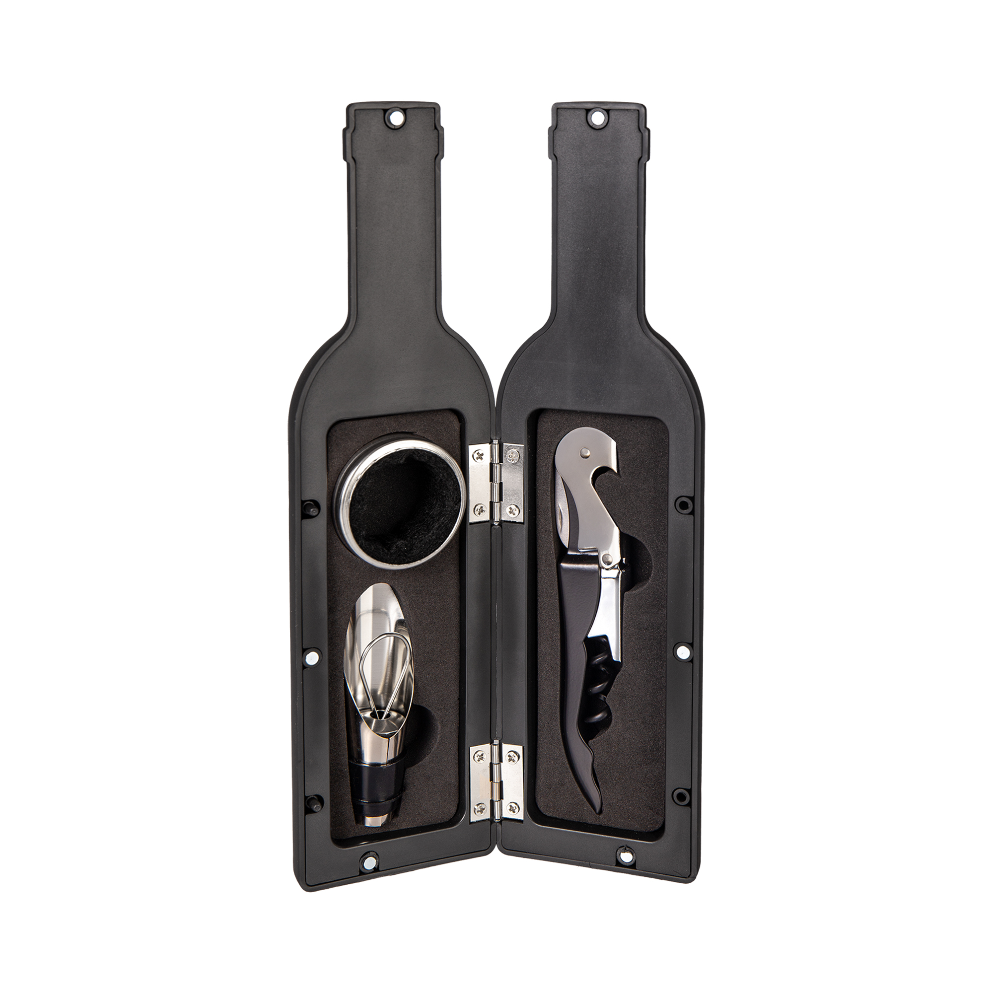 Víno je oblíbený nápoj, který se často podává na společenských akcích. Pokud chcete udělat dojem na svou rodinu a přátele, je důležité mít stylový barový set na víno. Tento set je ideálním doplňkem každé domácnosti – obsahuje vše, co potřebujete k otevření, nalévání a podávání vína, a to v jednom praktickém balení. Díky svému designu se vtipnými nápisy je také skvělým dárkem pro každého milovníka vína. Barový set na víno obsahuje: kroužek na víno, nálevku, otvírák s vývrtkou a nožíkem.