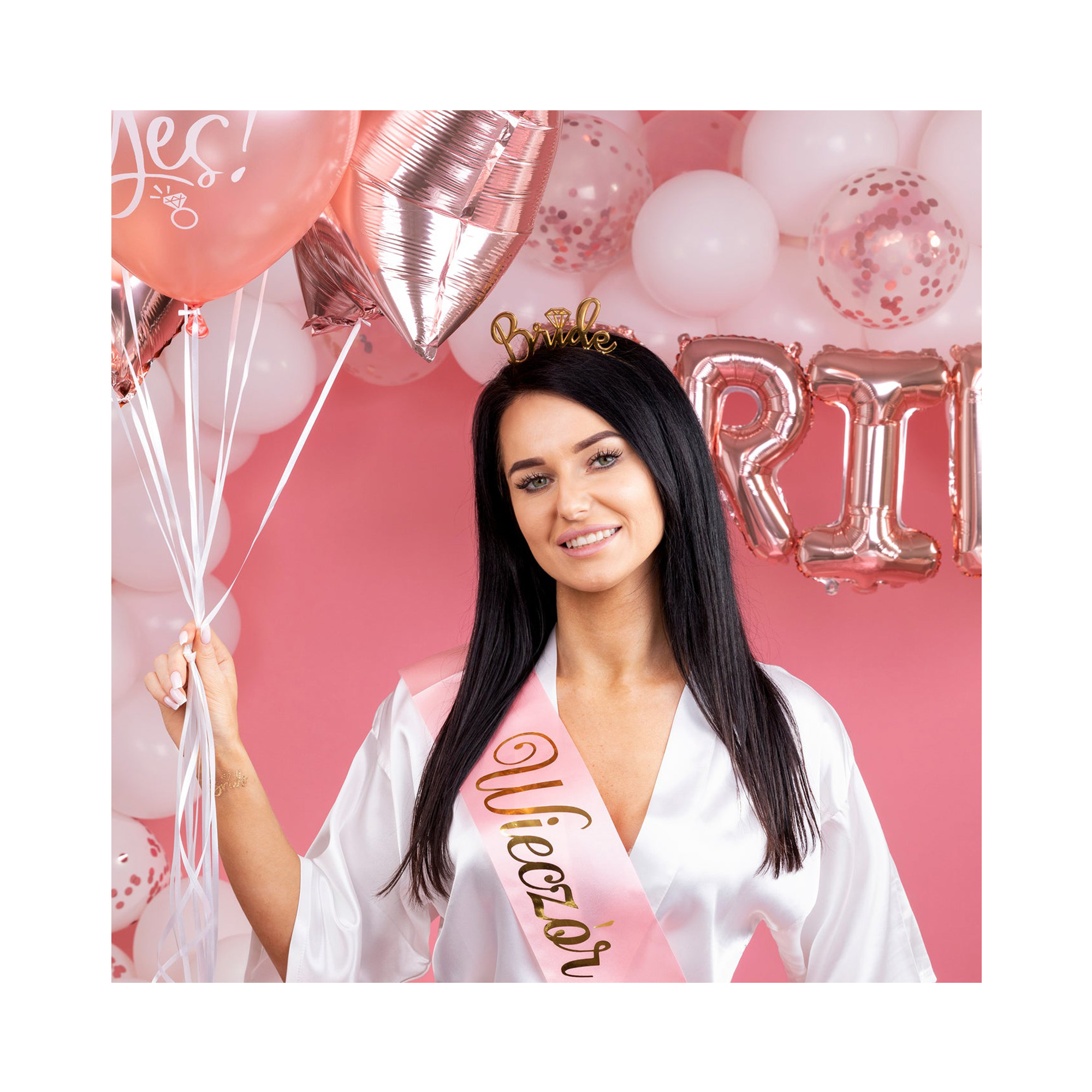 Originální čelenka ve tvaru nápisu "Bride", ozdobená diamantem a v elegantní zlaté barvě, určená pro nevěstu. Odlište nevěstu od ostatních účastnic rozlučky se svobodou – s touto čelenkou bude okouzlující a nepřehlédnutelná! Pro další doplňky a dekorace v rozlučkovém motivu můžete navštívit naši sekci Svatba a rozlučka. Výška nápisu: 5 cm Velikost: univerzální (určeno pro dospělé) Balení obsahuje: 1ks čelenky