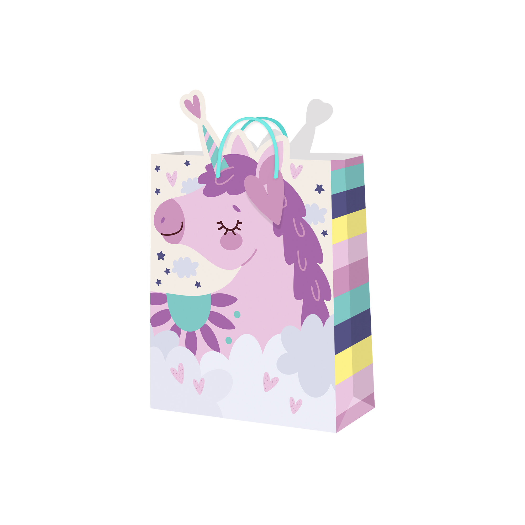 Máte koupený dárek a potřebujete ho rychle zabalit, aby i jako dárek vypadal? S papírovou taškou od Albi už to nemůže být snadnější. Stačí předmět do tašky vložit a můžete rovnou gratulovat. Dětská dárková taška nabízí netradiční výřez v horní části a atraktivní motiv jednorožce. Veselé barvy zaujmou všechny malé oslavenkyně! Součástí tašky je i jmenovka ve tvaru srdíčka, na kterou můžete napsat jméno či krátký vzkaz. Je dostupná ve dvou velikostech a skvěle se hodí pro různé příležitosti, jako jsou narozeniny, svátek i Vánoce. Rozměry malé tašky: 17,8 × 9,8 × 22,9 cm (šířka × hloubka × výška) Rozměry velké tašky: 26 × 12,7 × 32,4 cm (šířka × hloubka × výška)