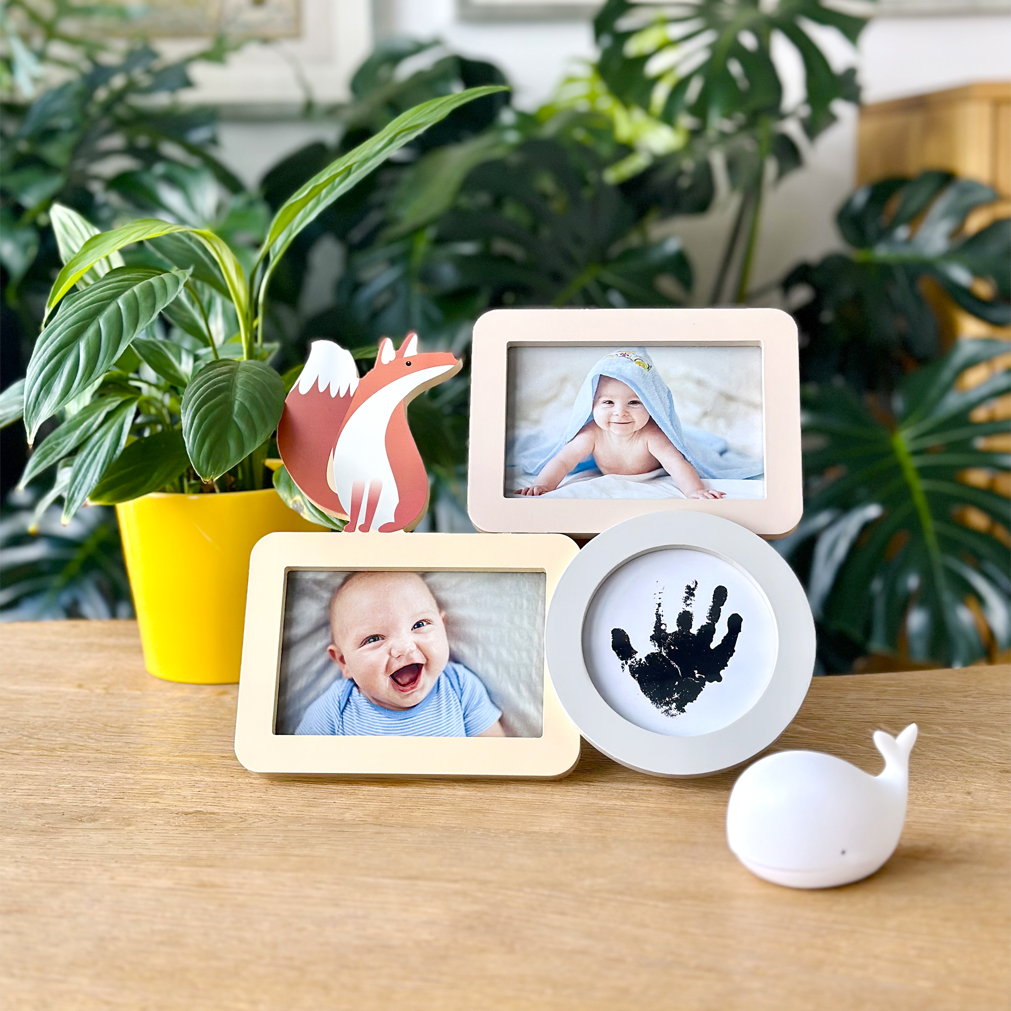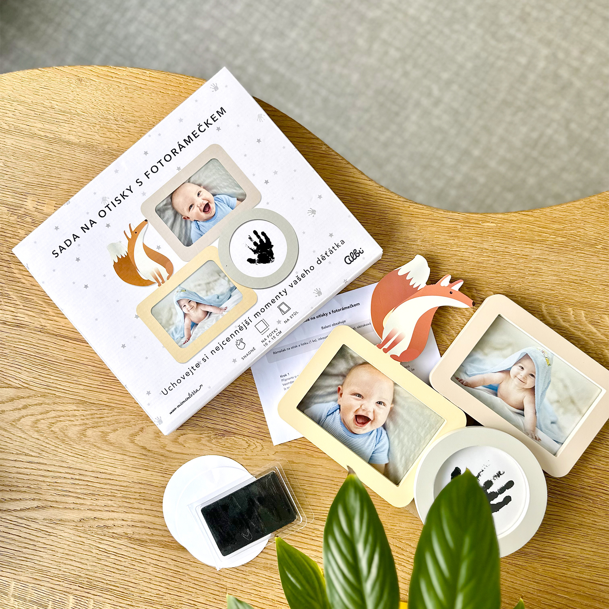 Fotorámeček pro miminko na 2 fotografie se sadou na otisky je ideální způsob, jak uchovat vzpomínky na první měsíce života vašeho děťátka. Díky svému originálnímu designu umožňuje vložit dvě fotografie a přidat otisk ručičky nebo nožičky. Roztomilá ilustrace lišky dodává rámečku hravý nádech, který dokonale zapadne do každého dětského pokojíčku. Součástí balení je sada na otisk s černým inkoustem, která je bezpečná pro dětskou pokožku, a návod, který vás provede jednoduchým procesem vytvoření otisku. Rámeček můžete snadno postavit na poličku nebo stůl, kde bude přinášet radost každý den. Perfektní dárek pro nastávající rodiče, ke křtinám nebo jako milá připomínka narození miminka. Balení obsahuje: barevný fotorámeček na 2 fotografie a otisk, černou inkoustovou podložku na otisky, potiskové papíry a návod. Velikost rámečku: 25,5 × 29,5 × 1 cm Vhodný na 2 fotografie o rozměrech: 10 × 15 cm