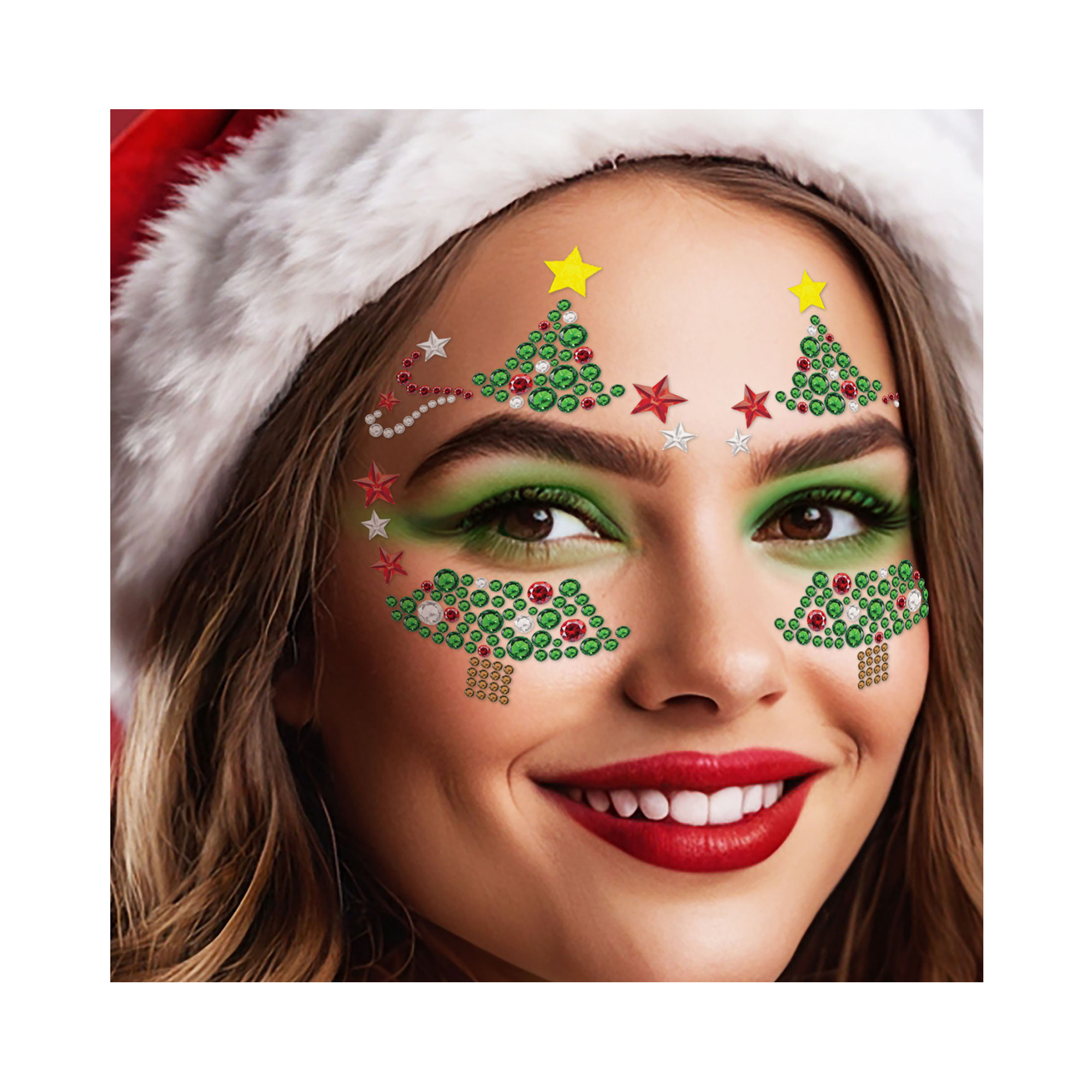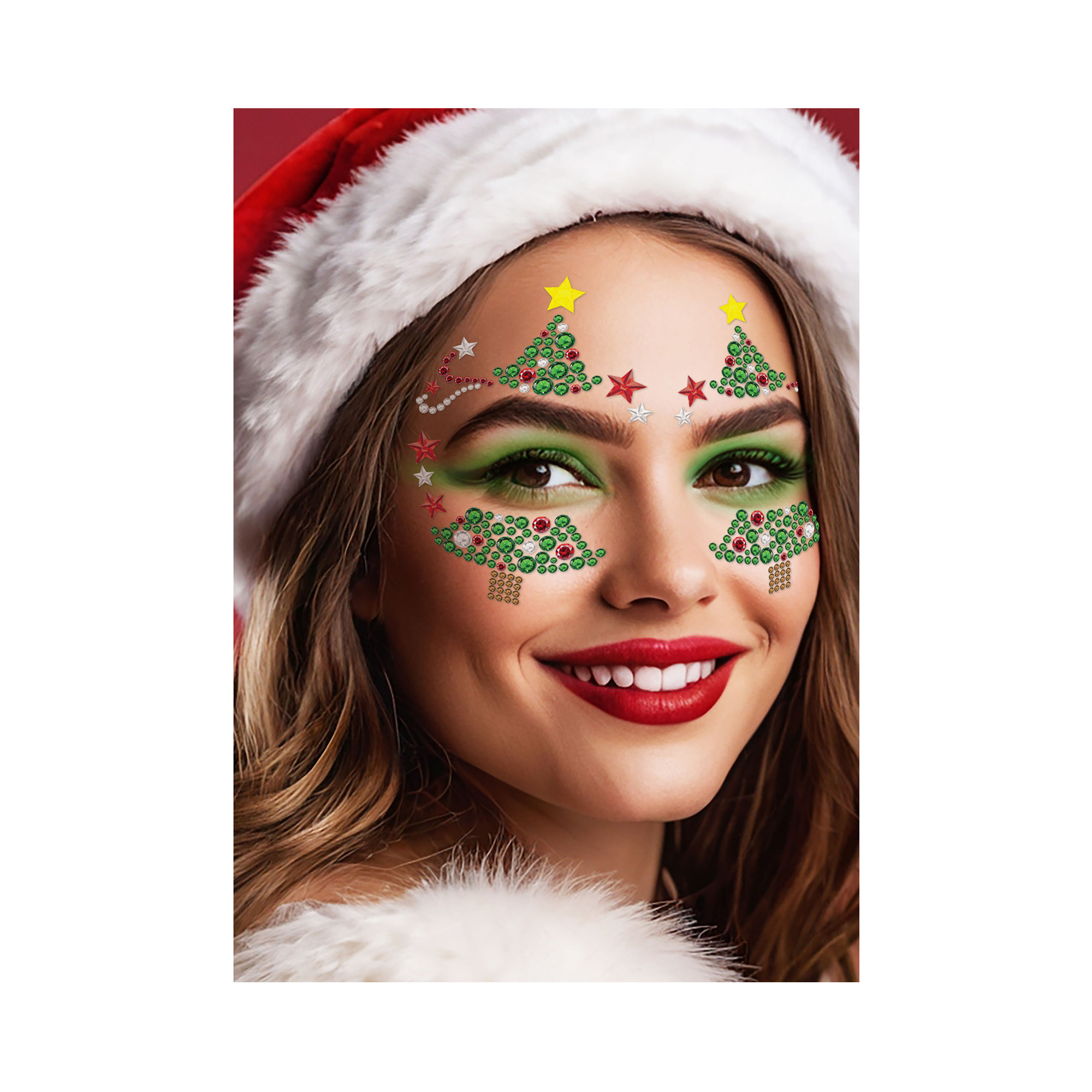 Sada samolepicích kamínků na obličej v podobě dvou vánočních stromečků originálně doplní váš sváteční outfit! Kamínky umělých drahokamů a hvězd jsou laděny do zelené, červené, bílé, žluté a hnědé barvy. Zazařte na firemním vánočním večírku nebo rodinné sešlosti a navoďte veselou sváteční atmosféru všude, kam vkročíte! Pro další vánoční doplňky a dekorace můžete prozkoumat naši kategorii Vánoce a Silvestr. Velikost: univerzální (určeno pro dospělé) Balení obsahuje: 1× dekorační set kamínků na obličej