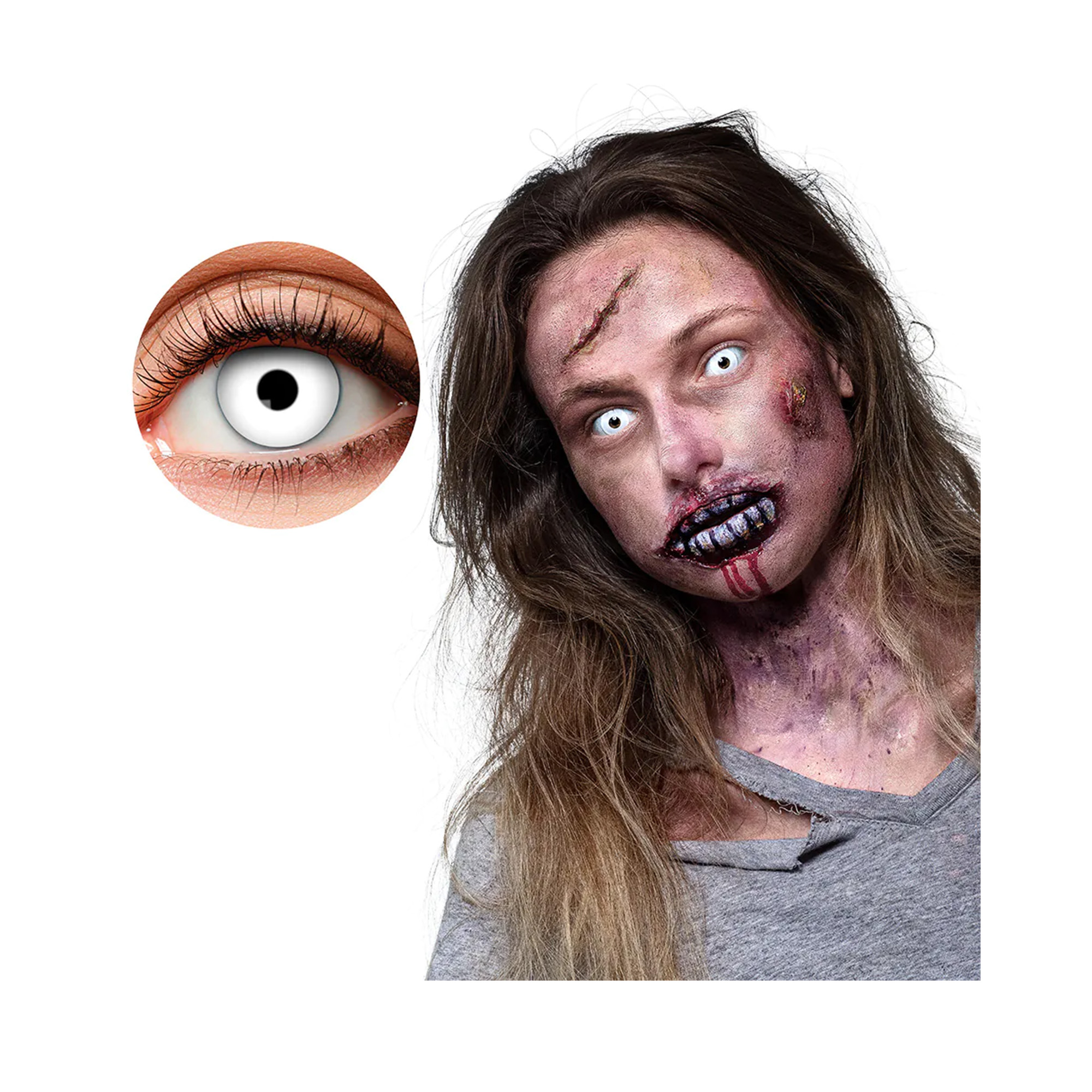 Týdenní kontaktní čočky v děsivě bílém provedení skvěle doplní kostým zombie, ducha nebo jiné strašidelné bytosti. Tyto měkké kontaktní čočky jsou nedioptrické a slouží pouze pro krátkodobé nošení jako doplněk kostýmu na tematickou párty, cosplay akci nebo Halloween. Pro další dekorace a kostýmové doplňky ve strašidelném stylu můžete prozkoumat naši sezónní kategorii Halloween. Upozornění: Dodržujte pokyny týkající se trvanlivosti čoček. Nepoužívejte je, pokud se během nošení objeví jakékoli potíže. Nikdy čočky nenoste déle, než je doporučeno, a nepoužívejte je přes noc. Uchovávejte je v čistém, uzavřeném pouzdře naplněném čerstvým roztokem určeným pro kontaktní čočky (není součástí balení). Velikost: univerzální (určeno pro dospělé) Materiál: 58% polyhema a 42% voda Balení obsahuje: 1 pár bílých kontaktních čoček (neobsahuje speciální roztok, který je potřebný pro uchování čoček)