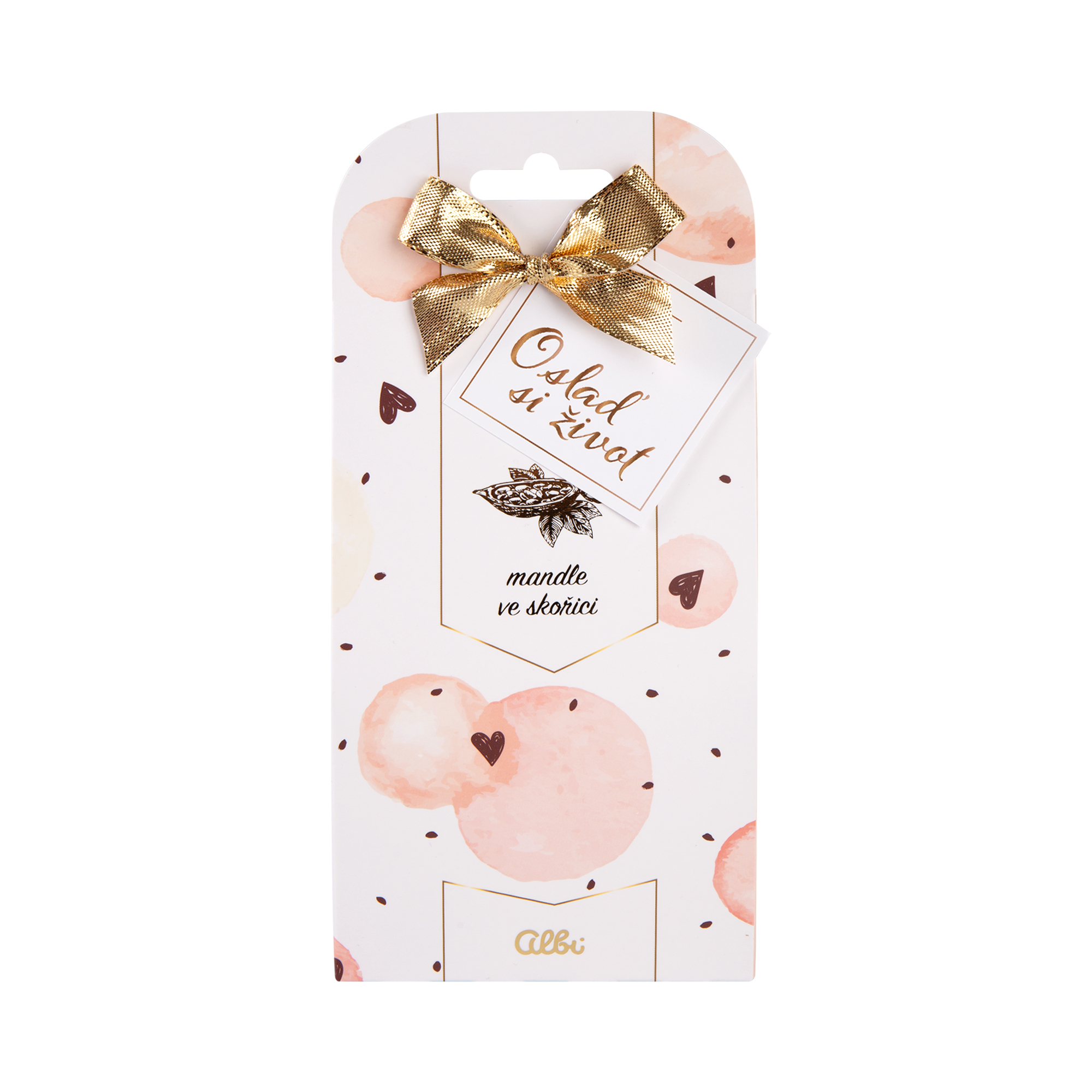 Udělejte radost svým blízkým lahodnými mandlemi v mléčné čokoládě obalené ve voňavé skořici. Tento sladký dárek v pěkném balení s věnováním je milou pozorností, kterou potěšíte každého. Hmotnost: 120 g Rozměry balení: 19,3 cm × 9 cm × 4, 8 cm Mandle ve skořici 120g Složení: Mléčná čokoláda 79% (cukr, kakaové máslo, sušené mléko, sušená syrovátka, kakaová hmota, emulgátor sójový lecitin, aroma (vanilín), mandle jádra pražená 20%, skořice mletá 1%. Alergeny: Výrobek obsahuje sóju, mléko a jiné ořechy. Výrobek může obsahovat arašídy a sezam. Výživové údaje na 100 g: energetická hodnota 2376 kJ/572 kcal tuky 38,1 g – z toho nasycené mastné kyseliny 16,5 g sacharidy 45,9 g – z toho cukry 42,4 g bílkoviny 9,3 g sůl 0,17 g Hmotnost: 120 g Skladujte v suchu, chraňte před teplem.