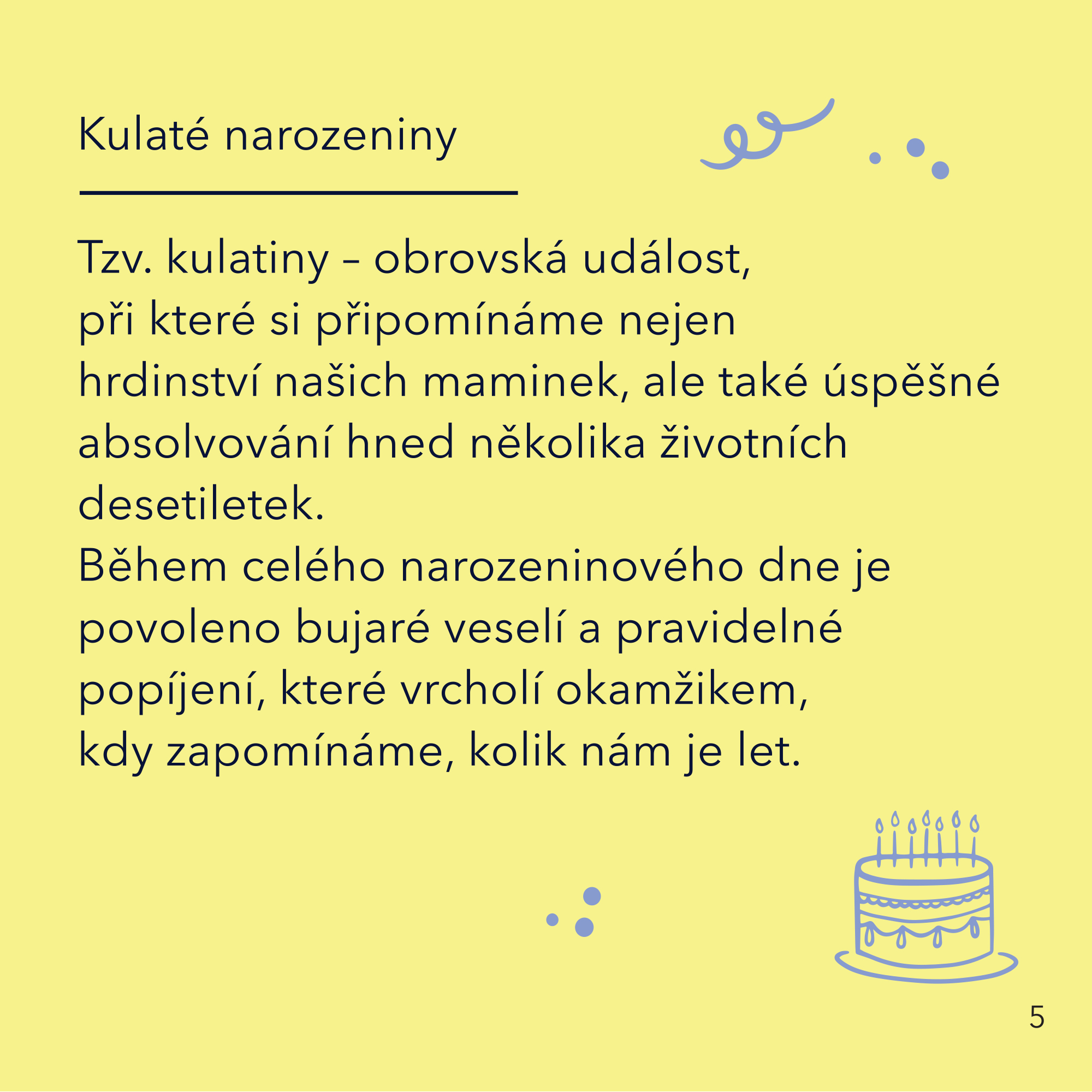 Přemýšlíte nad tím, co dát ke 40. narozeninám kamarádce, partnerovi nebo třeba kolegyni? Darujte jim vzpomínky na jejich dětství a dospívání! Tahle knížka je sice rozměrově menší, zato obsahově předčí i legendární Bravíčko. 56 celobarevných stran v sobě střídá humor, československou nostalgii a více či méně taktní narážky na věk, které vás ani oslavence z řad mileniálů nepřestanou bavit. Zkrátka jedna velká narozeninová párty v duchu Dalibora Jandy, videokazet a céček! (Retro)minikniha Ke 40. narozeninám vznikla jako originální dárek, který potěší čtyřicátníky i čtyřicátnice se smyslem pro humor a láskou k osmdesátkám. Oproti našim jiným knihám, jsme tuto vytvořili záměrně bez nutnosti vyplňování. Špetku personalizace jsme ale přece jen ponechali. Hned na 1. straně najdete prostor pro věnování a váš podpis. Počet stran: 56 Rozměry knihy: 10,5 × 10,5 cm Vyrobeno v České republice.