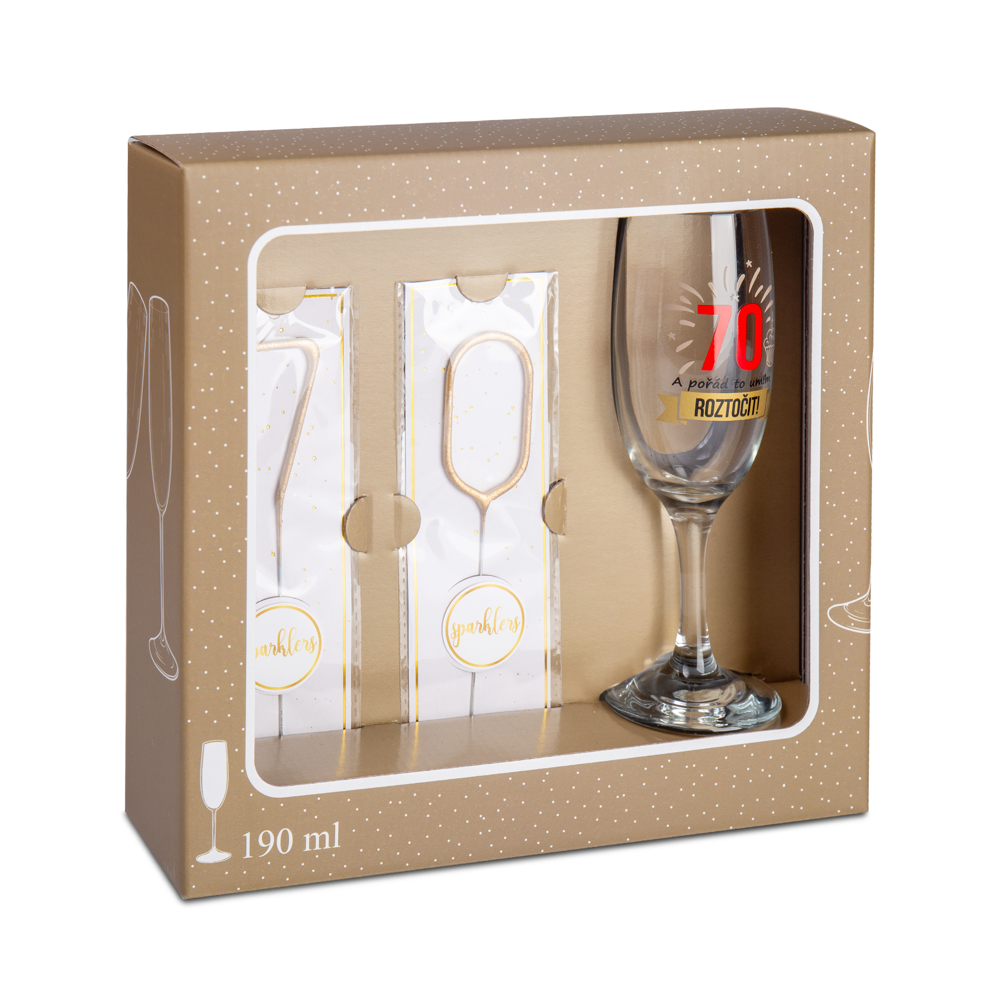 Další významné narozeniny se blíží a vy přemýšlíte, čím oslavence či oslavenkyni obdarovat? Narozeninová sada je ideálním darem pro vaše milované.  Sada obsahuje vkusné prskavky s číslovkou a skleničku na šampaňské s humorným nápisem. Celá sada je v elegantním balení. Objem sklenice: 190 ml