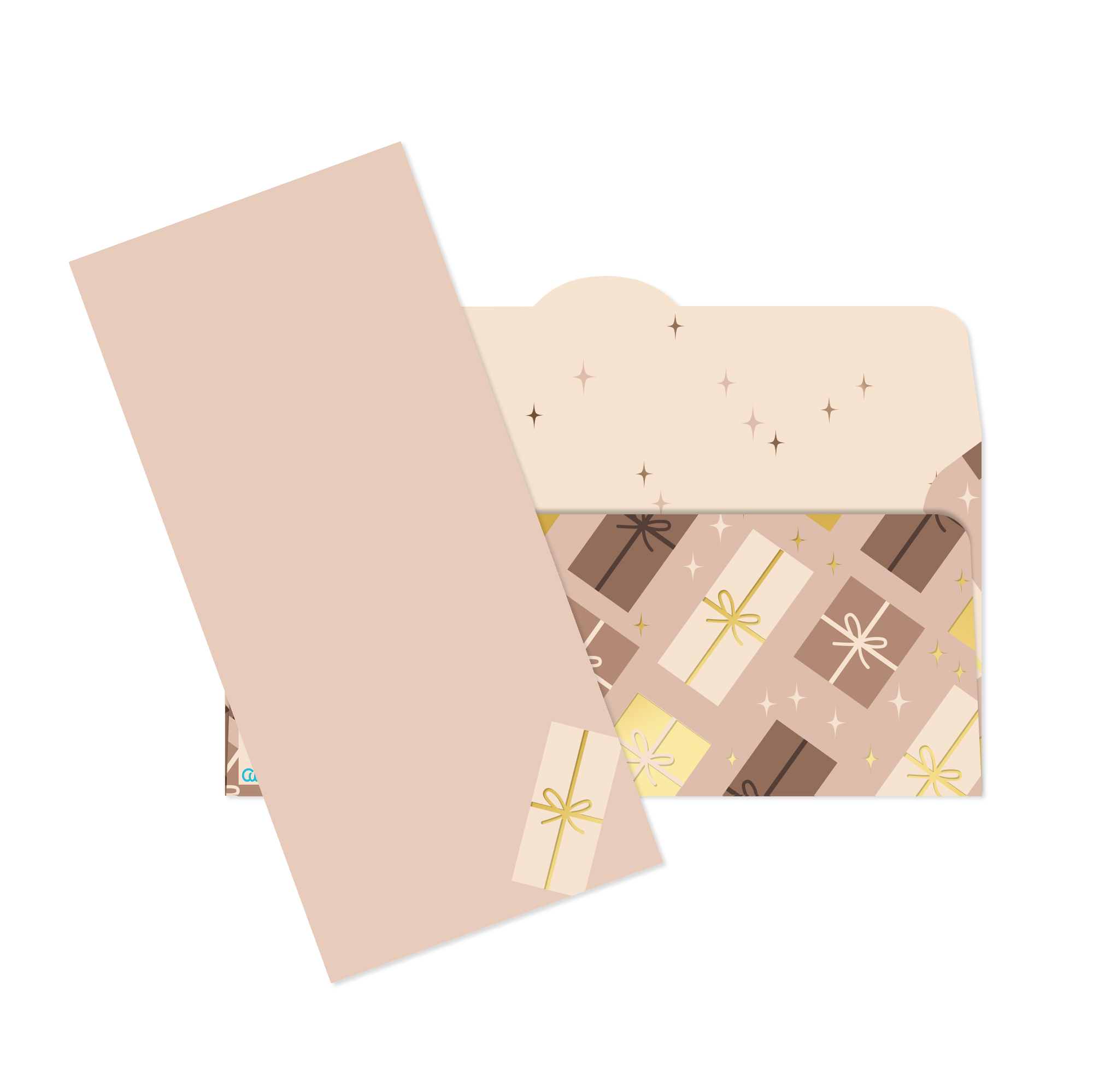 Papírová obálka představuje snadný a elegantní způsob, jak darovat peníze nebo voucher. Univerzální motiv dárků na béžovém pozadí se zlatou ražbou potěší ženy i muže každého věku. Vyměňte obyčejnou bílou obálku za praktický Money Gift a překvapte obdarovaného dárkovým poukazem nebo hotovostí. Obálka má v sobě navíc i designově sladěnou kartičku z tvrdého papíru, na kterou můžete napsat věnování. Rozměry: 11 × 22 cm