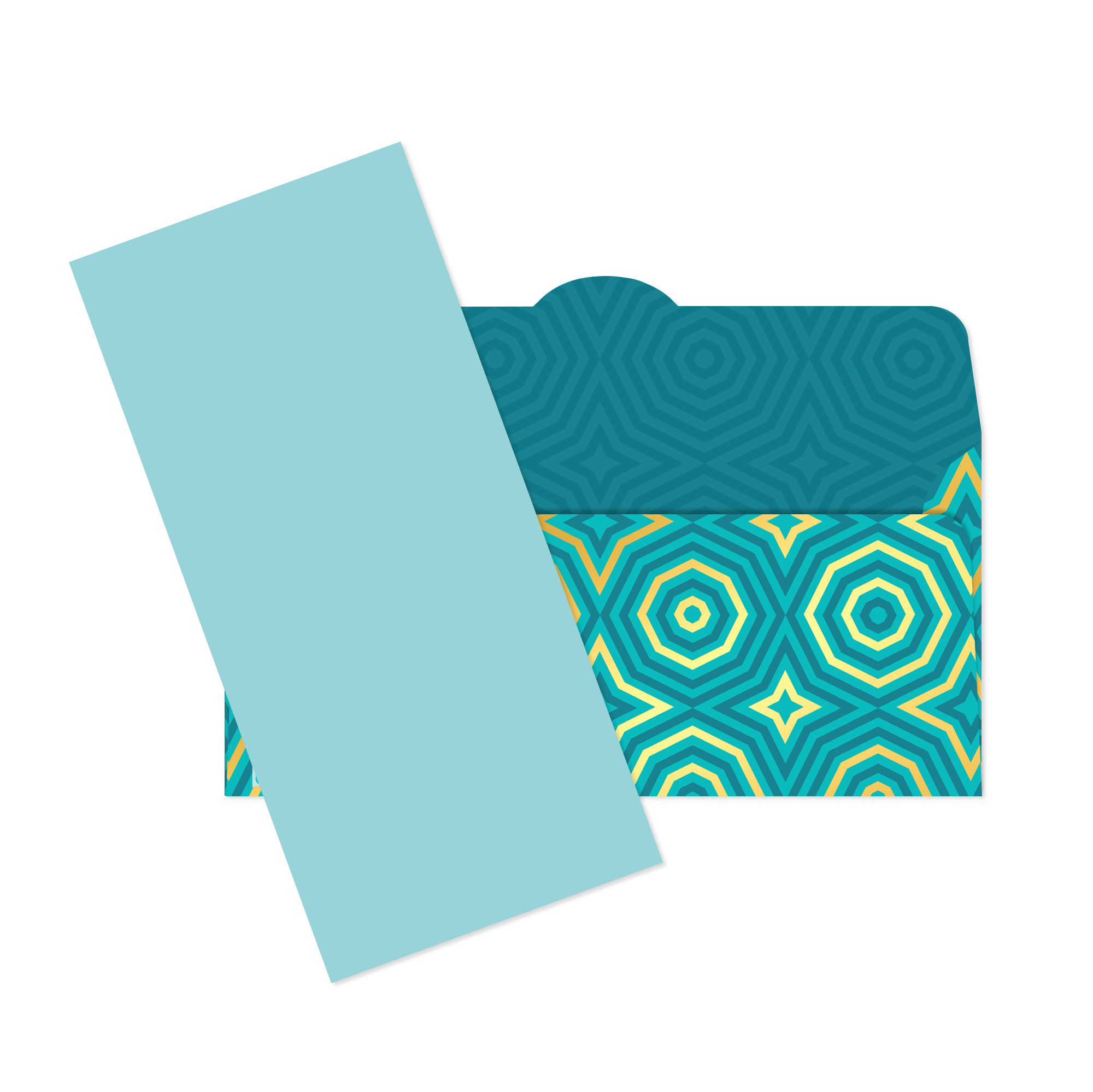 Papírová obálka představuje snadný a elegantní způsob, jak darovat peníze nebo voucher. Kombinace geometrických tvarů na tyrkysovém podkladu a zlaté ražby potěší muže i ženy. Vyměňte obyčejnou bílou obálku za praktický Money Gift a překvapte obdarovaného dárkovým poukazem nebo hotovostí. Obálka má v sobě navíc i designově sladěnou kartičku z tvrdého papíru, na kterou můžete napsat věnování. Rozměry: 11 × 22 cm