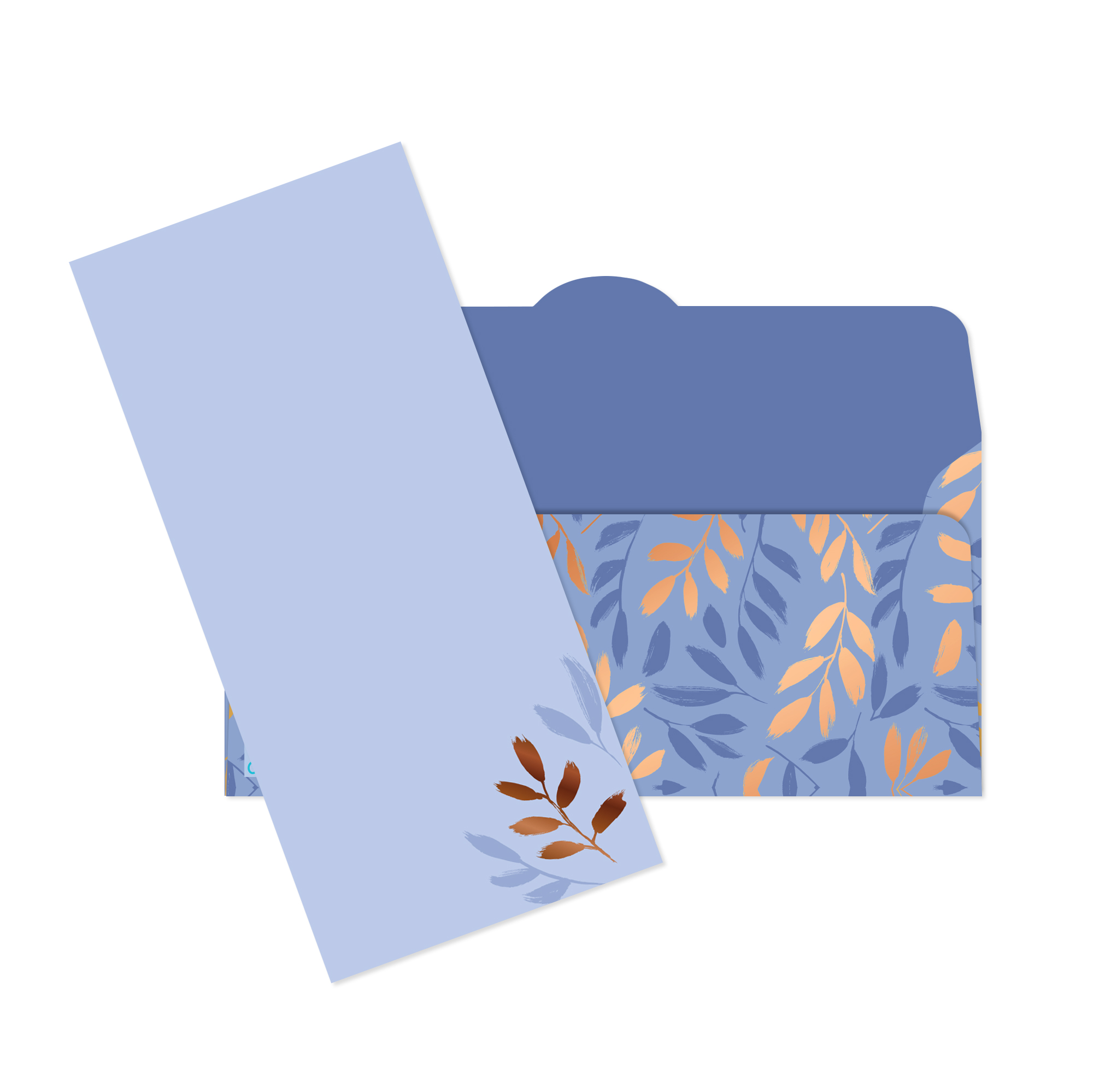 Papírová obálka představuje snadný a elegantní způsob, jak darovat peníze nebo voucher. Kombinace jemných větviček na modrém podkladu a bronzové ražby potěší všechny ženy. Vyměňte obyčejnou bílou obálku za praktický Money Gift a překvapte obdarovaného dárkovým poukazem nebo hotovostí. Obálka má v sobě navíc i designově sladěnou kartičku z tvrdého papíru, na kterou můžete napsat věnování. Rozměry: 11 × 22 cm