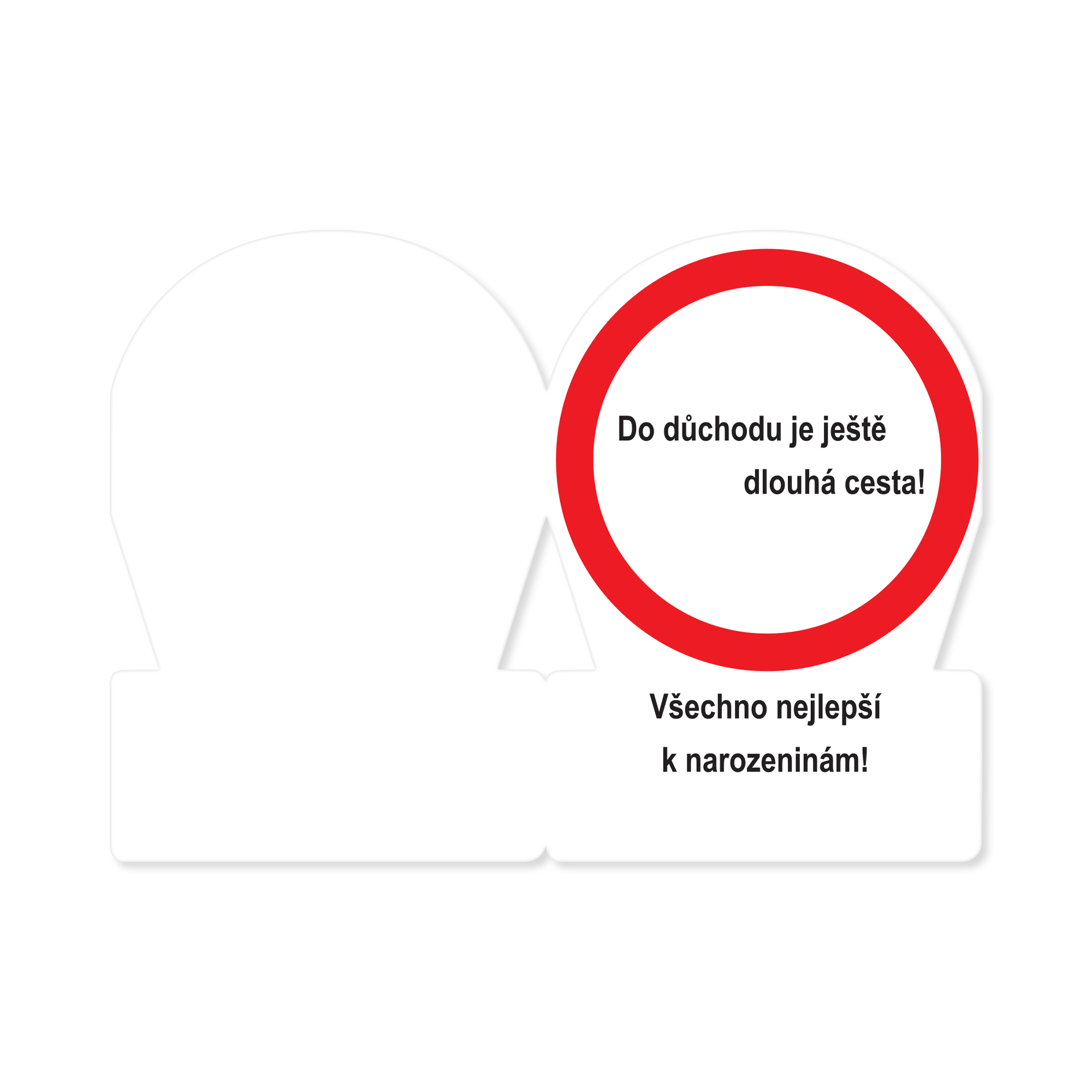 Jubilejní narozeninové přání s výsekem ve tvaru dopravní značky a s věnováním uvnitř. Věnování: "K 60. narozeninám. Žádný spěch… Do důchodu je ještě dlouhá cesta! Všechno nejlepší k narozeninám!". Pod textem pak zůstává dostatek místa pro váš podpis, případně kratší vzkaz. Součástí přání je i bílá papírová obálka. Tip na dárek ke kulatým narozeninám pro všechny řidiče. Rozměry přání: 19,5 × 13,5 cm
