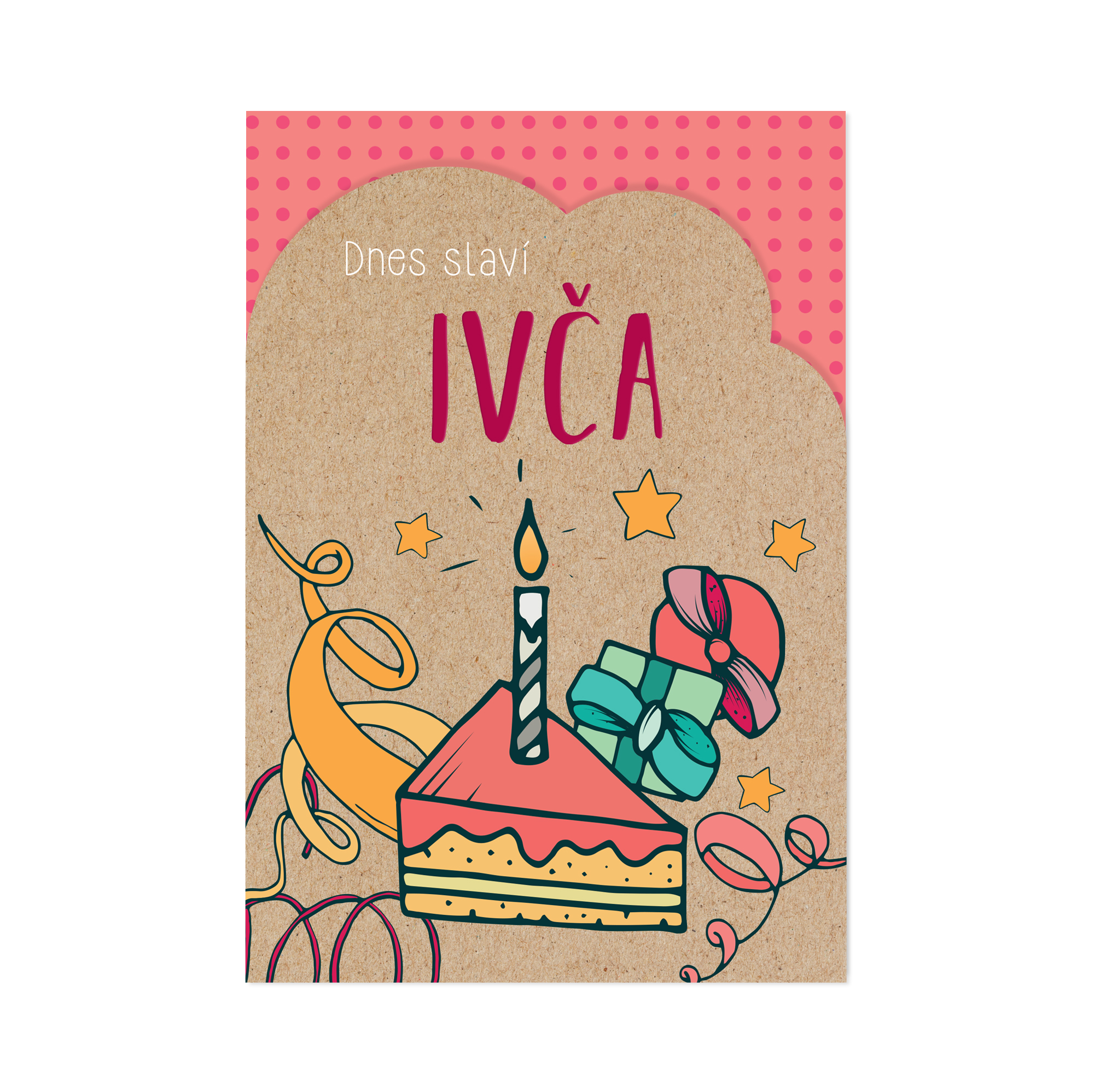 Papírové přání se jménem Ivča je ideálním dárkem ke svátku pro všechny nositelky tohoto jména. Kraftový papír a jednoduchý výsek zaujme na první pohled. Součástí balení je i hnědá kraftová obálka. Text uvnitř přání: Užij si svůj den! Rozměry: 13,5 × 19,5 cm