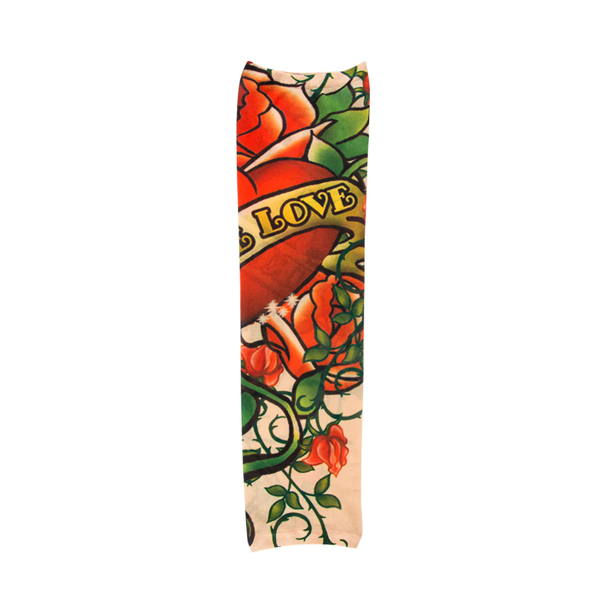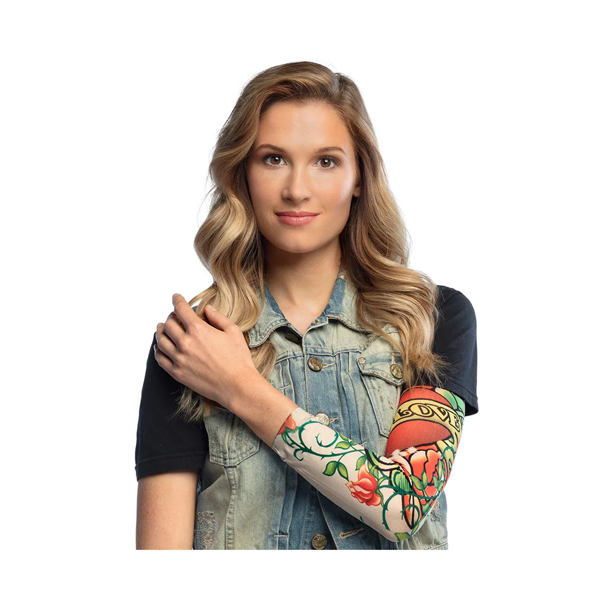 Rukáv s tetováním True Love je skvělý způsob, jak dodat kostýmu drsný vzhled bez bolesti a závazků. Elastický rukáv jednoduše natáhnete na ruku a díky realistickému potisku bude vypadat jako skutečné tetování. Pro bezchybný efekt můžete okraj rukávu zamaskovat náramkem, potítkem nebo jinou ozdobou. Tento potištěný rukáv je perfektní volbou pro doladění kostýmu rockera nebo motorkáře na tematickou párty, karneval nebo cosplay akci. Velikost: univerzální (určeno pro dospělé) Materiál: 100% polyester Balení obsahuje: 1 ks potištěného rukávu