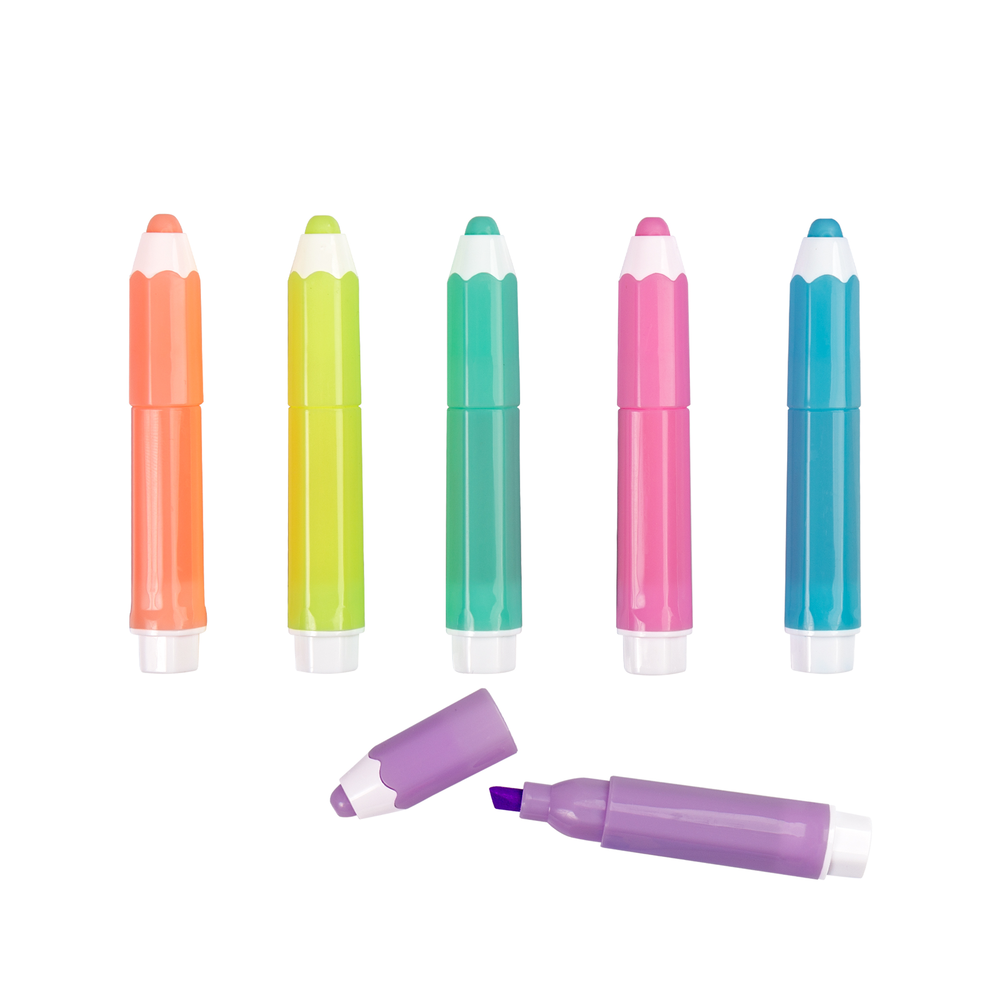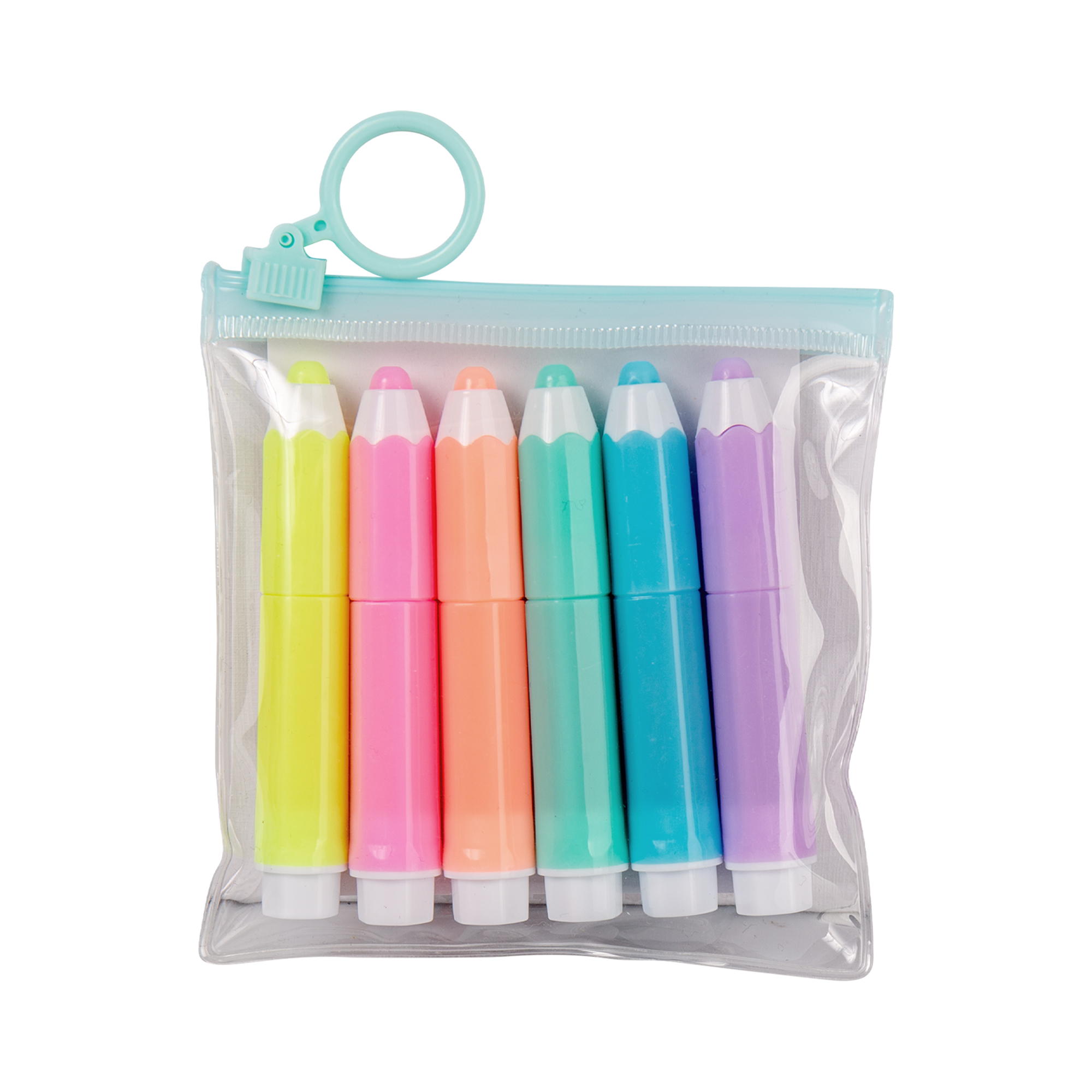 Vylepšete si svůj školní sešit, diář či blok barevnými prvky se sadou zvýrazňovačů. Veselé barvy rozzáří každou stránku a roztomilý design zpříjemní den. Celá sada zvýrazňovačů je v praktickém uzavíratelném balení, takže se vám jednotlivé fixy nemohou poztrácet v batohu, či kabelce. Sada obsahuje 6 kusů zvýrazňovačů (žlutý, růžový, oranžový, zelený, modrý a fialový) ve tvaru pastelek.