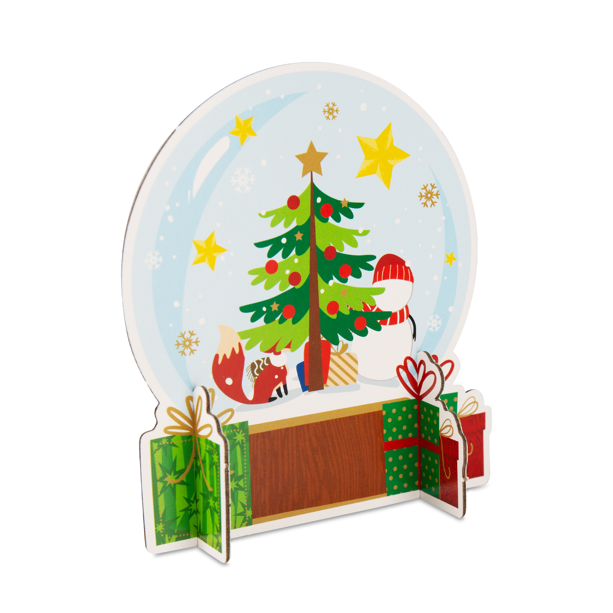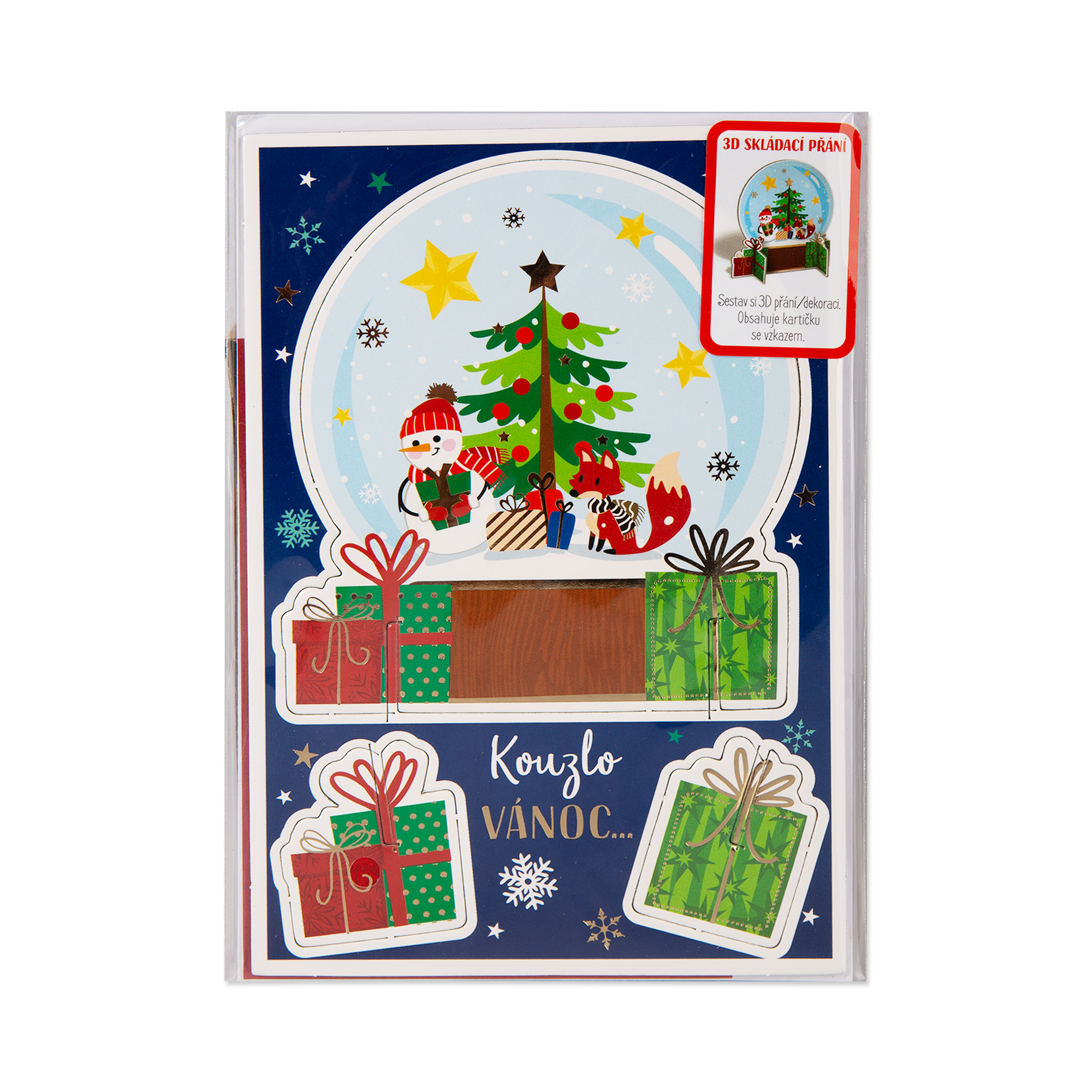 Překvapte na Vánoce své blízké netradičním skládacím přáním, ze kterého se dá jednoduše vytvořit 3D vánoční dekorace. Přání z tvrdého kartonu s motivem sněžítka si může obdarovaný snadno přetvořit v originální 3D dekoraci, která mu bude připomínat, že na něj myslíte. Vánoční 3D přání – Sněžítko navíc obsahuje kartičku s textem "…ať zaplní Váš domov hřejivou láskou, štěstím a klidem. Krásné Vánoce" a bílou obálku, ve které můžete přáníčko poslat. Rozměry složeného přání: 11,5 × 17 cm