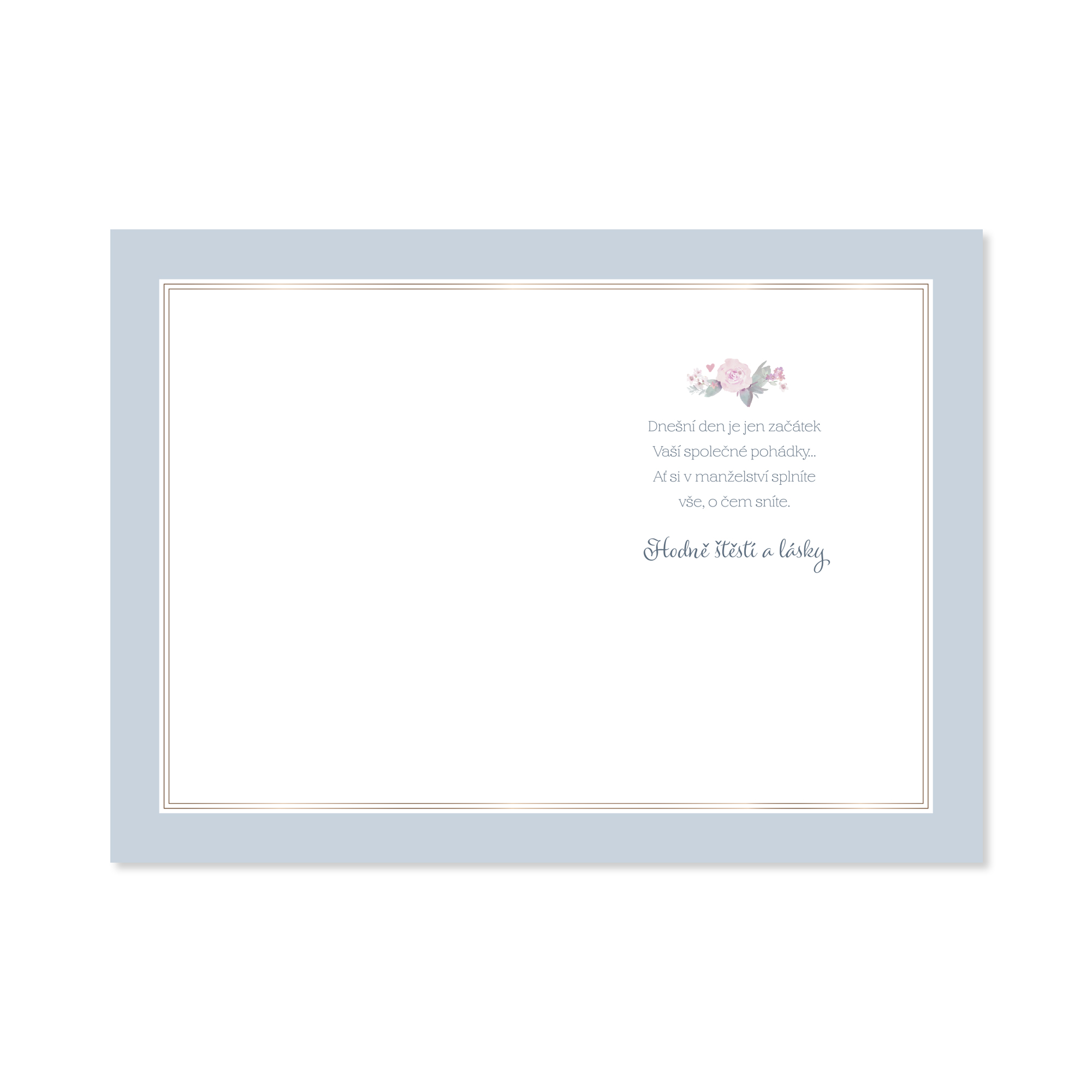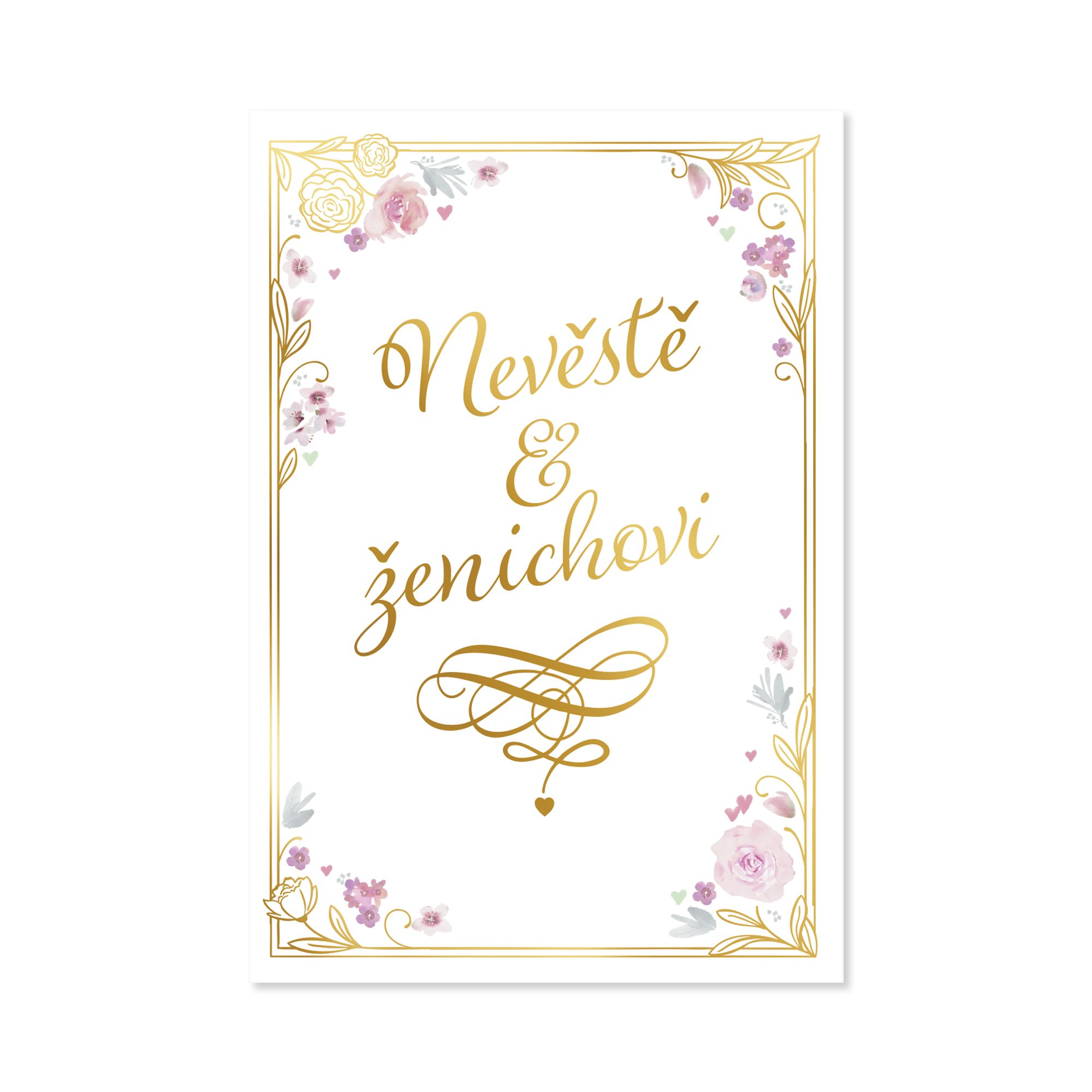Darujte novomanželům papírové přáníčko a podtrhněte kouzlo svatebního dne. Klasické přání s s nápisem Nevěstě a ženichovi zdobí jemné květiny a zlatá ražba. Uvnitř najdete krátké věnování a zároveň dostatek místa pro Váš vzkaz a podpis. Text přání: Nevěstě a ženichovi. Dnešní den je jen začátek Vaší společné pohádky… Ať si v manželství splníte vše, o čem sníte. Hodně štěstí a lásky Součástí je i bílá obálka, ve které můžete přání darovat. Rozměry přání: 13,5 × 19,5 cm