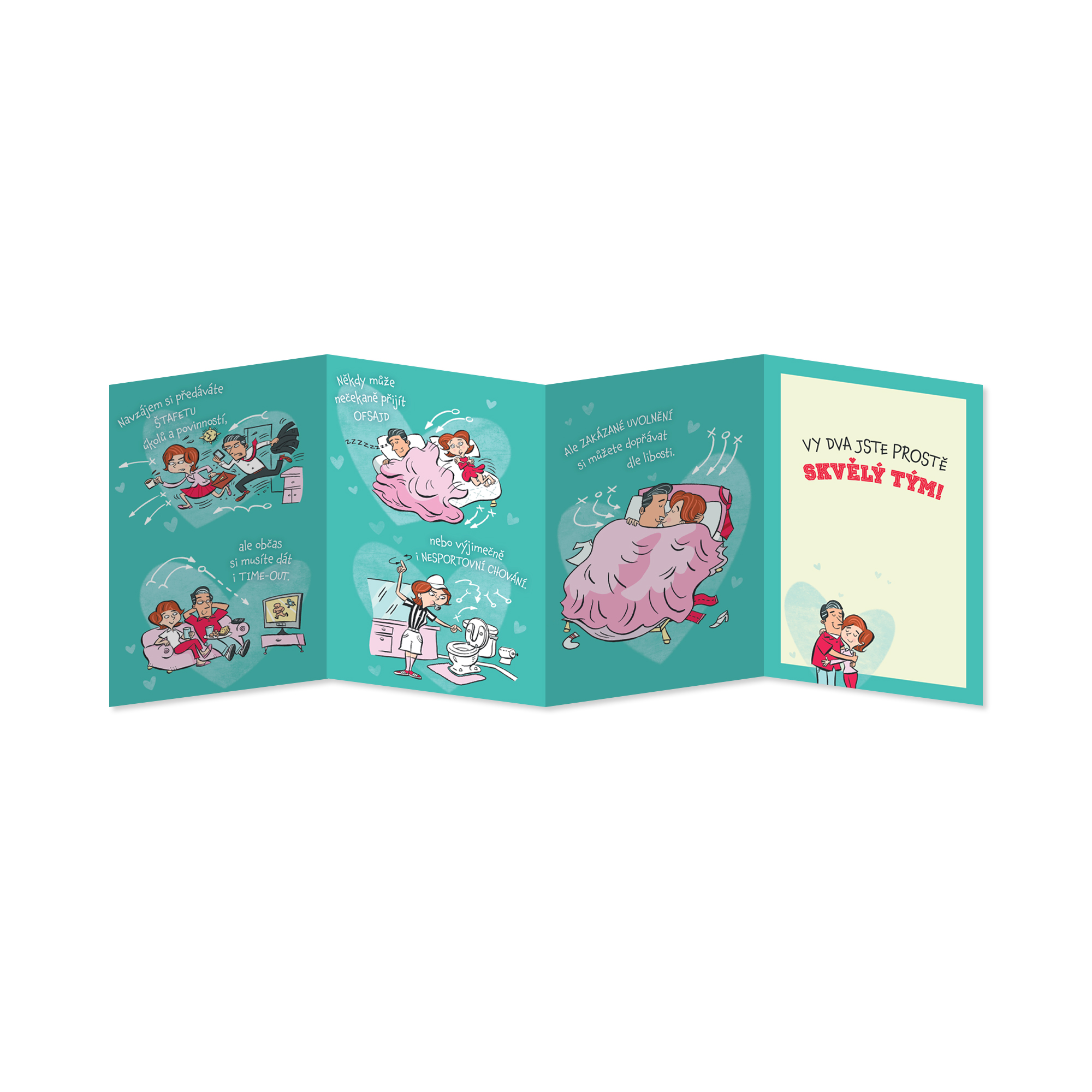 Darujte novomanželům vtipné papírové přáníčko a odlehčete stres svatebního dne. Harmonikové přání s originálním vtipným věnováním a ilustracemi novomanžele zaručeně pobaví. Ideální pro sportovce. Uvnitř najdete věnování a zároveň dostatek místa pro Váš vzkaz a podpis. Text přání: Manželství je jako sport! Musíte hrát FAIR-PLAY. Vyžaduje SOUHRU a TÝMOVÉHO ducha. Navzájem si předáváte ŠTAFETU úkolů a povinností, ale občas si musíte dát i TIME-OUT. Někdy může nečekaně přijít OFSAJD nebo výjimečně přijde i NESPORTOVNÍ CHOVÁNÍ. Ale ZAKÁZANÉ UVOLNĚNÍ si můžete dopřávat dle libosti. Vy dva jste prostě skvělý tým! Součástí je i bílá obálka, ve které můžete přání darovat. Rozměry přání: 13,5 × 19,5 cm