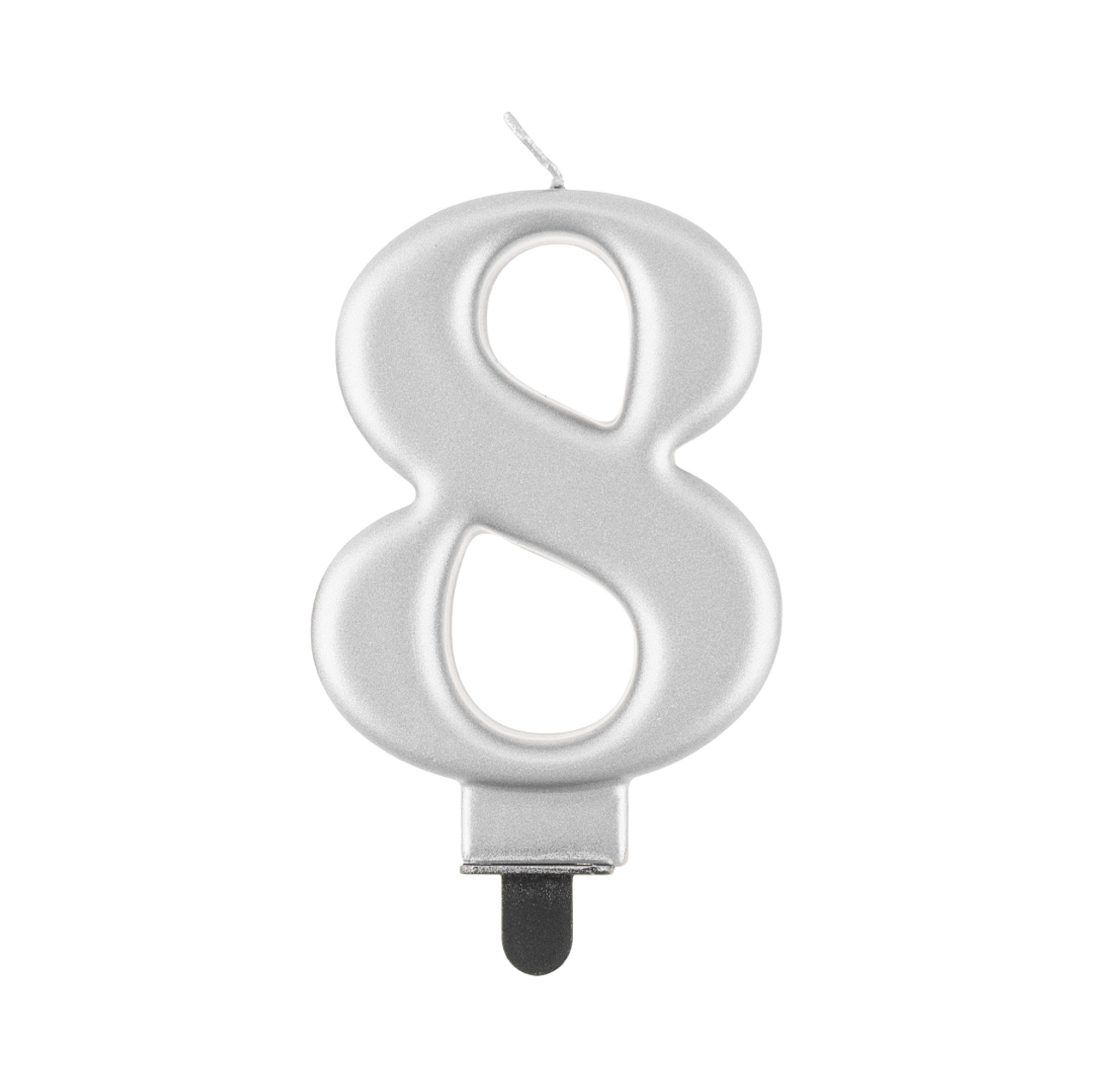 Dortové svíčky ve tvaru číslice 0 až 9 jsou ideální dekorace na oslavu narozenin či zobrazení jiného významného jubilea. Jednotlivé svíčky můžete navzájem kombinovat a vytvořit, tak potřebné číslo. Svíčky mají elegantní stříbrnou barvu a budou se dobře kombinovat s párty doplňky a dekoracemi ve stejném odstínu. Pro inspiraci můžete navštívit naši sekci Tematické oslavy – Stříbrná. Postup: Svíčku zapíchneme do dortu nebo do jiného měkkého podloží, před zapálením zkontrolujeme zda směřuje vzhůru. Upozornění: Doporučujeme produkt zapalovat ve volném, nejlépe venkovním prostoru a v dostatečné vzdálenosti od stojících osob. Neumísťujeme k hořícím svíčkám ani k jiným hořlavým předmětům! Jako u všech hořlavin je třeba důsledně dbát na bezpečnost a přistupovat k ní jako k hořlavině. Výška svíčky: 8 cm Obsah balení: 1 ks svíčky ve stříbrné barvě