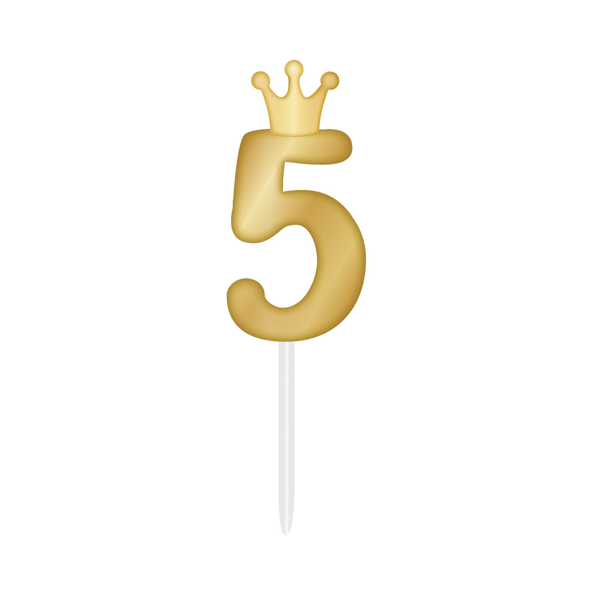 Originální dortové svíčky ve tvaru zlatých číslic 0 až 9 s korunkou stylově dozdobí dort na dětskou narozeninovou oslavu či párty. Jednotlivé svíčky můžete navzájem kombinovat a vytvořit tak potřebné číslo. Postup: Svíčku zapíchneme do dortu nebo do jiného měkkého podkladu, před zapálením zkontrolujeme, zda směřuje vzhůru. Upozornění: Doporučujeme produkt zapalovat ve volném, nejlépe venkovním prostoru a v dostatečné vzdálenosti od stojících osob. Neumísťujeme k hořícím svíčkám ani k jiným hořlavým předmětům! Jako u všech hořlavin je třeba důsledně dbát na bezpečnost a přistupovat k ní jako k hořlavině. Výška svíčky: 6 cm (10,5 cm včetně plastového zápichu) Obsah balení: 1 ks zlaté svíčky s korunkou