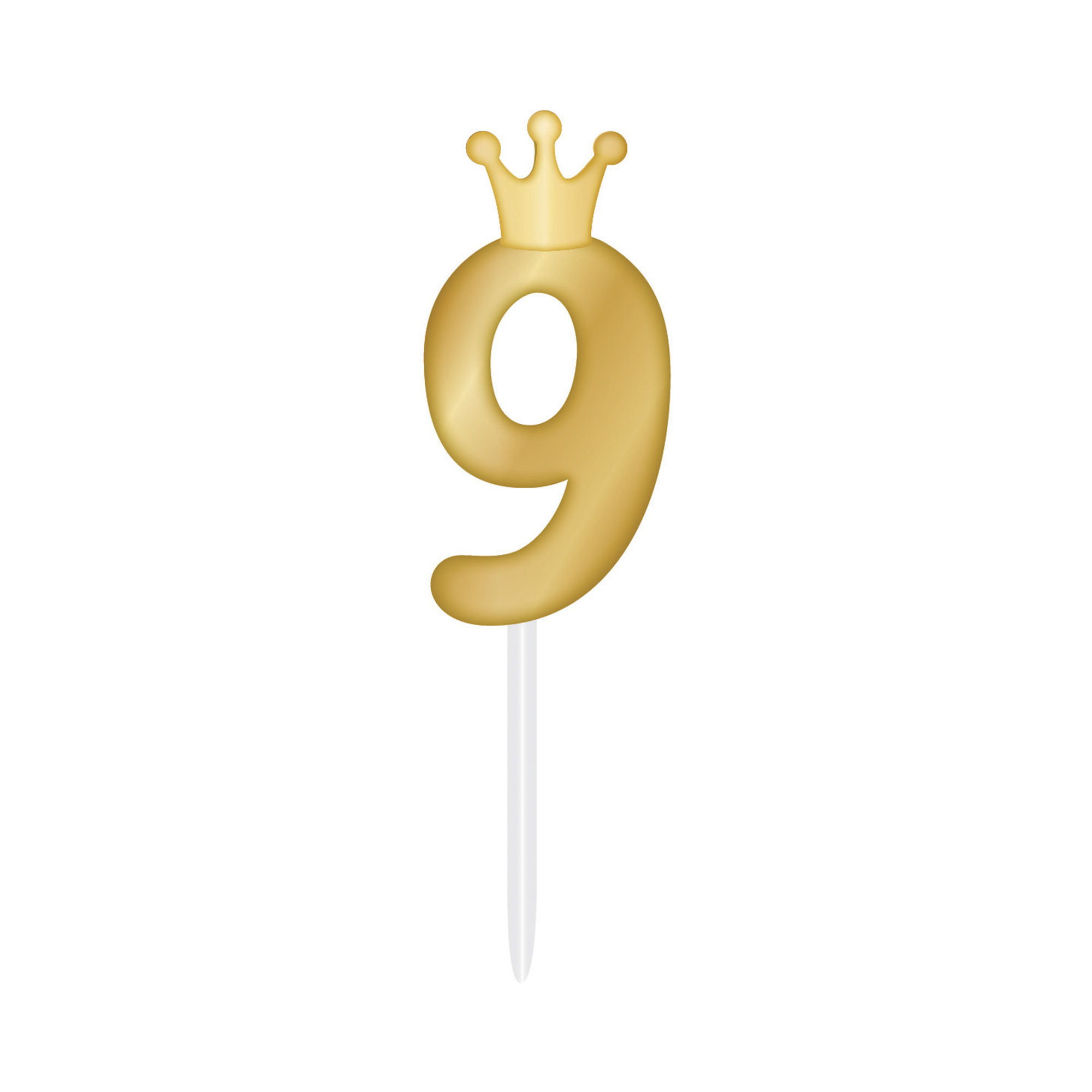 Svíčka dortová zlatá s korunkou číslo 9 Albi