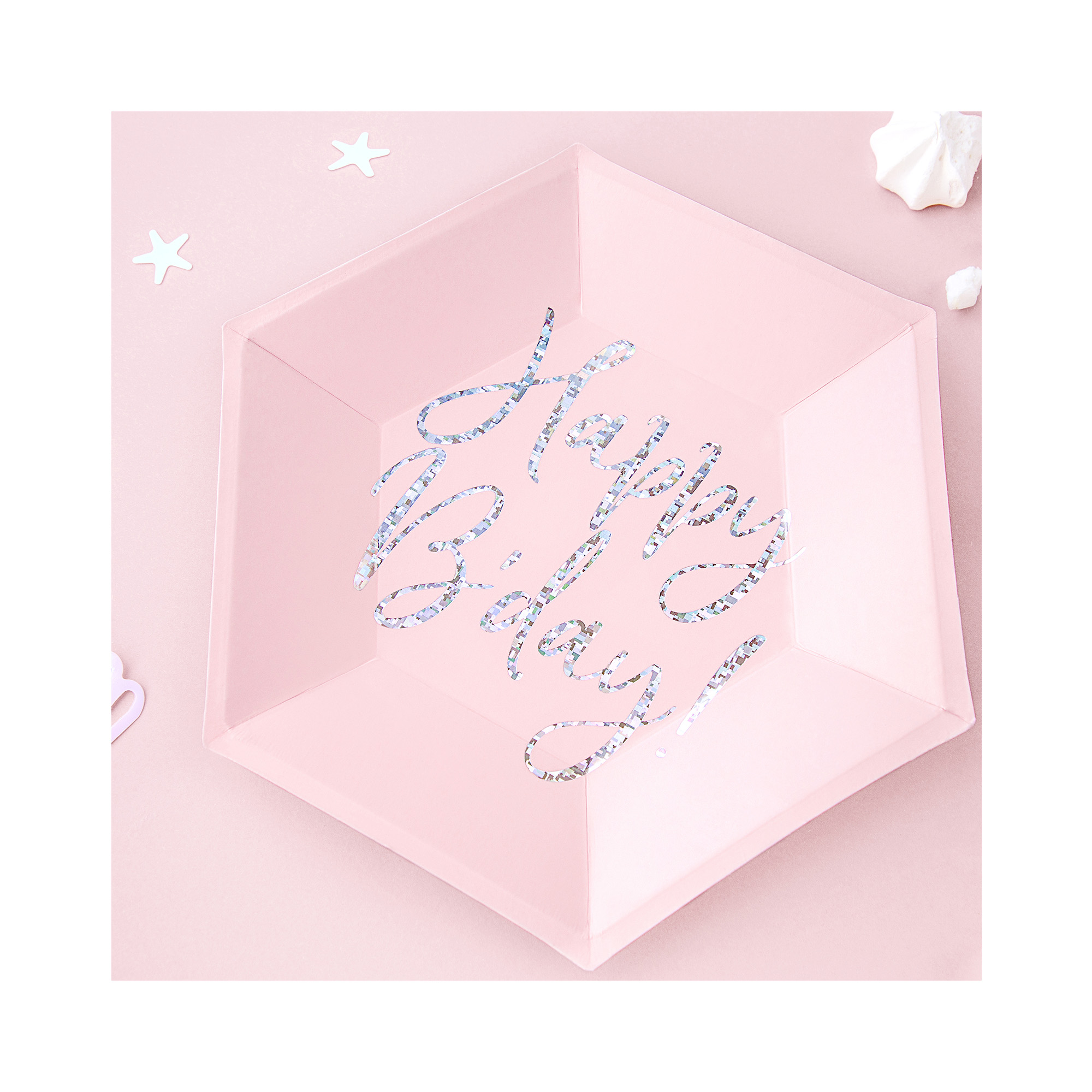 Talíře Happy B'day! světle růžové 6 ks Albi