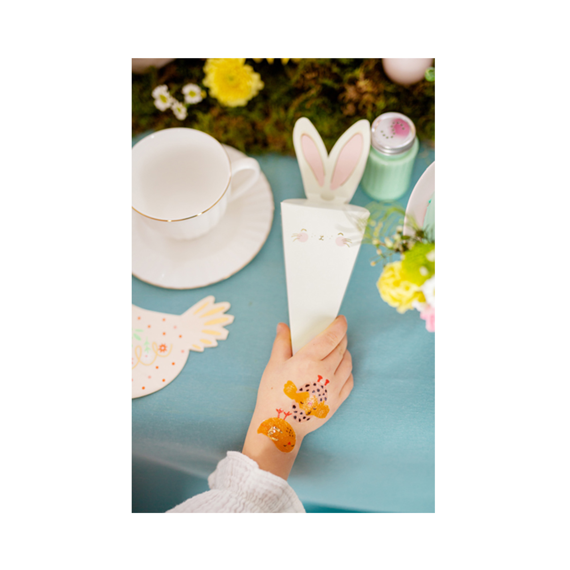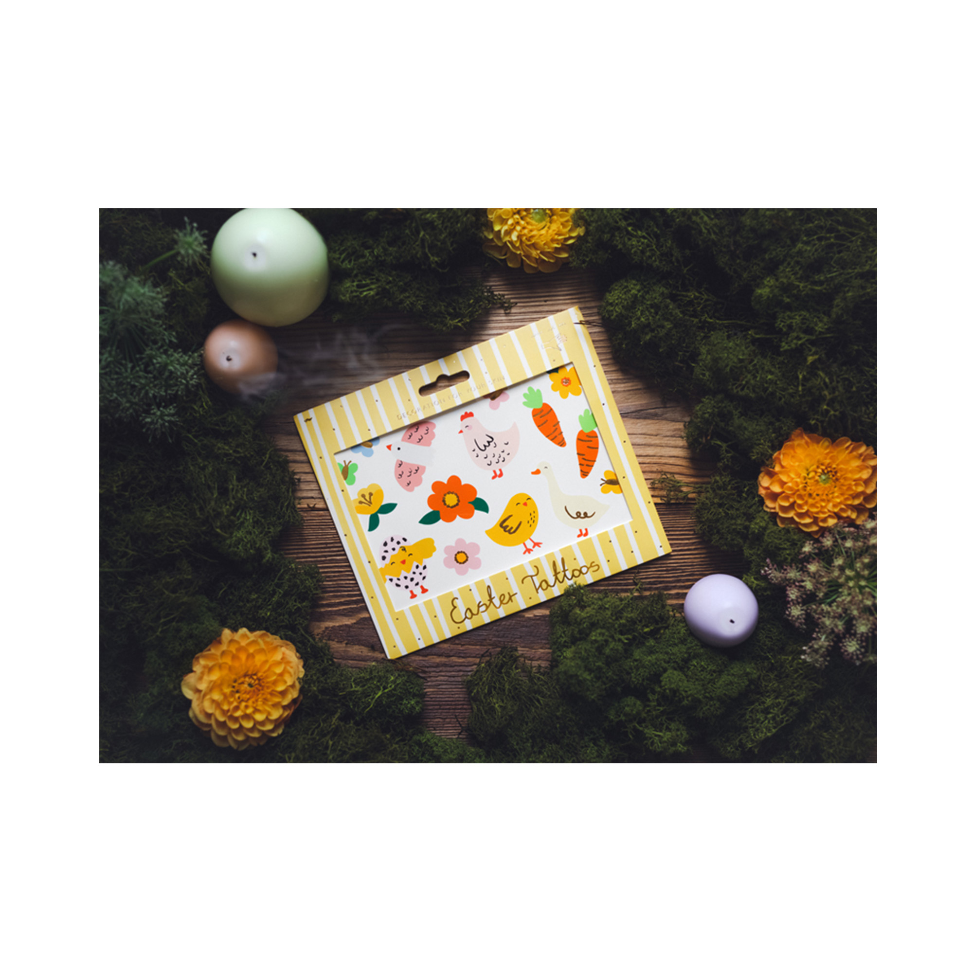 Veselá sada omyvatelných tetování ve velikonočním motivu. Tato sada tetování obsahuje 20 různých vzorů, jako slepičku, kuřátka, husu, ptáčka, mrkve, motýlky a květiny. Tetování jistě pobaví malé i velké a je hezkým doplňkem tematické párty nebo oslavy. Pro další párty doplňky či dekorace s tematikou jara, květin a broučků můžete navštívit naši katagorii Jaro a květiny. Balení obsahuje: 20 ks tetovaní
