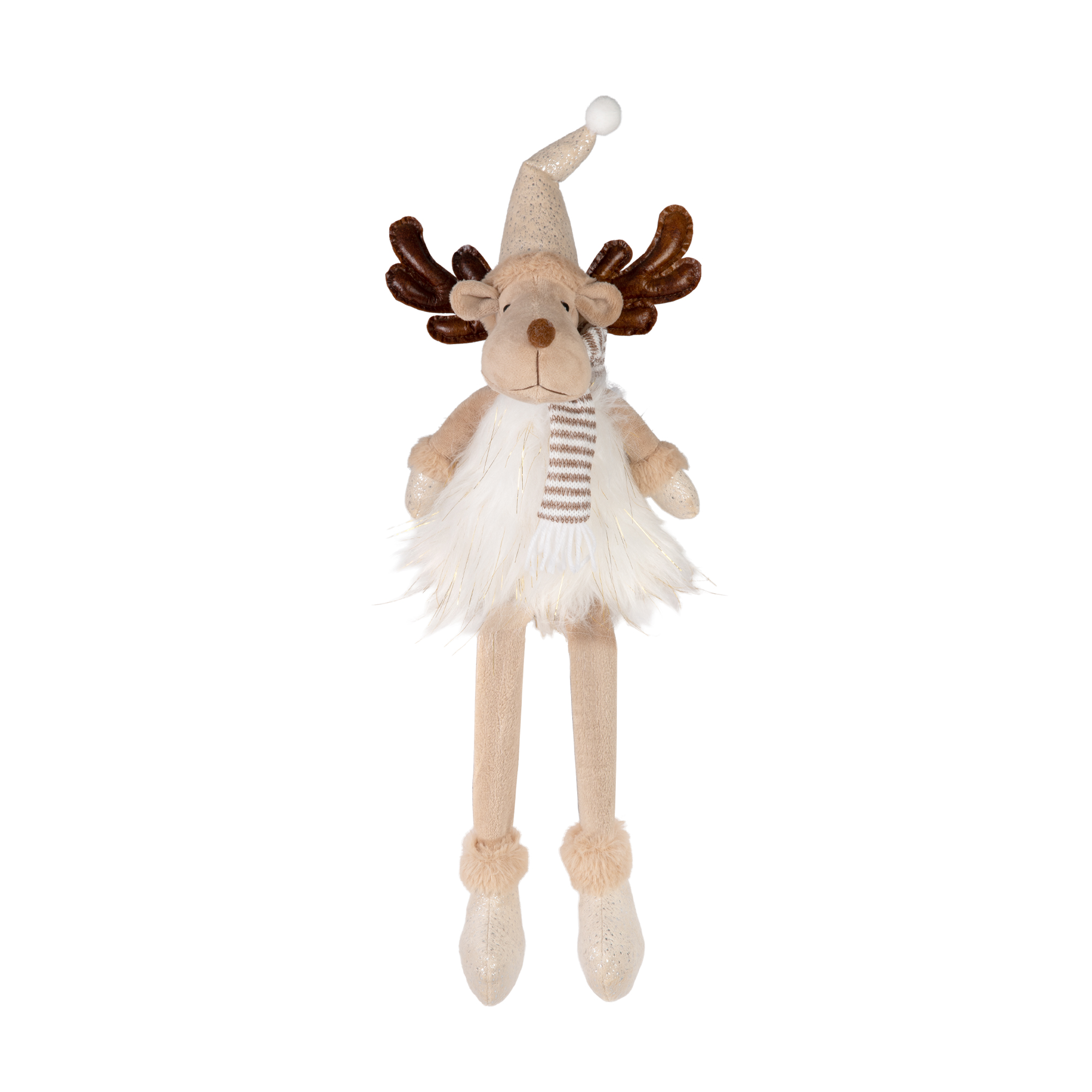 Přineste do vašeho domova zimní pohodu s touto roztomilou dekorací vánočního soba. Tělo postavičky je zatížené, aby dobře sedělo a nepadalo. Nohy soba nejsou nijak vyztuženy, díky tomu dekorace vypadá hezky posazená s nohami volně visícími dolů. Posaďte soba kamkoliv a nechte ho dotvořit vánoční atmosféru. Výška soba: cca 52 cm Výška sedícího soba: cca 30 cm