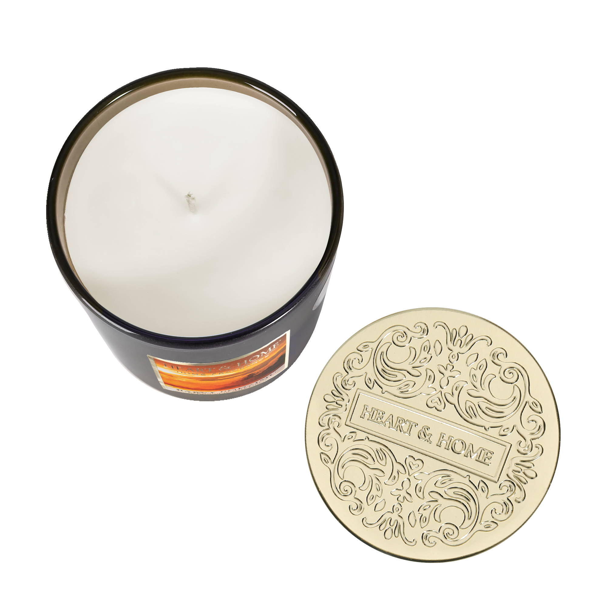 Heart and Home, to je prémiová značka vonných svíček. A proč jsou tyto svíčky tak výjimečné? Vosk pro tyto svíčky byl vyroben ze sójových bobů. Díky tomu jsou svíčky Heart and Home šetrnější a přívětivější k životnímu prostředí, jsou netoxické, a vy tak můžete relaxovat s pocitem, že jste přispěli k tomu, aby naše příroda zůstala krásná. Velké svíčky Heart and Home vydrží hořet až 75 hodin. Na rozdíl od klasických svíček totiž hoří při nízkých teplotách, a tak provoní váš domov na opravdu dlouhou dobu. Díky aromatizovanému vosku budou svíčky vonět i po zhasnutí.  Velké svíčky jsou vhodné především do větších místností. TIP: po dohoření si můžete sklenici nechat a využít ji jako elegantní dózu nebo dekoraci. Hmotnost: 320 g Průměr svíčky: 8,5 cm Výška svíčky: 12 cm Doba hoření: až 75 hodin