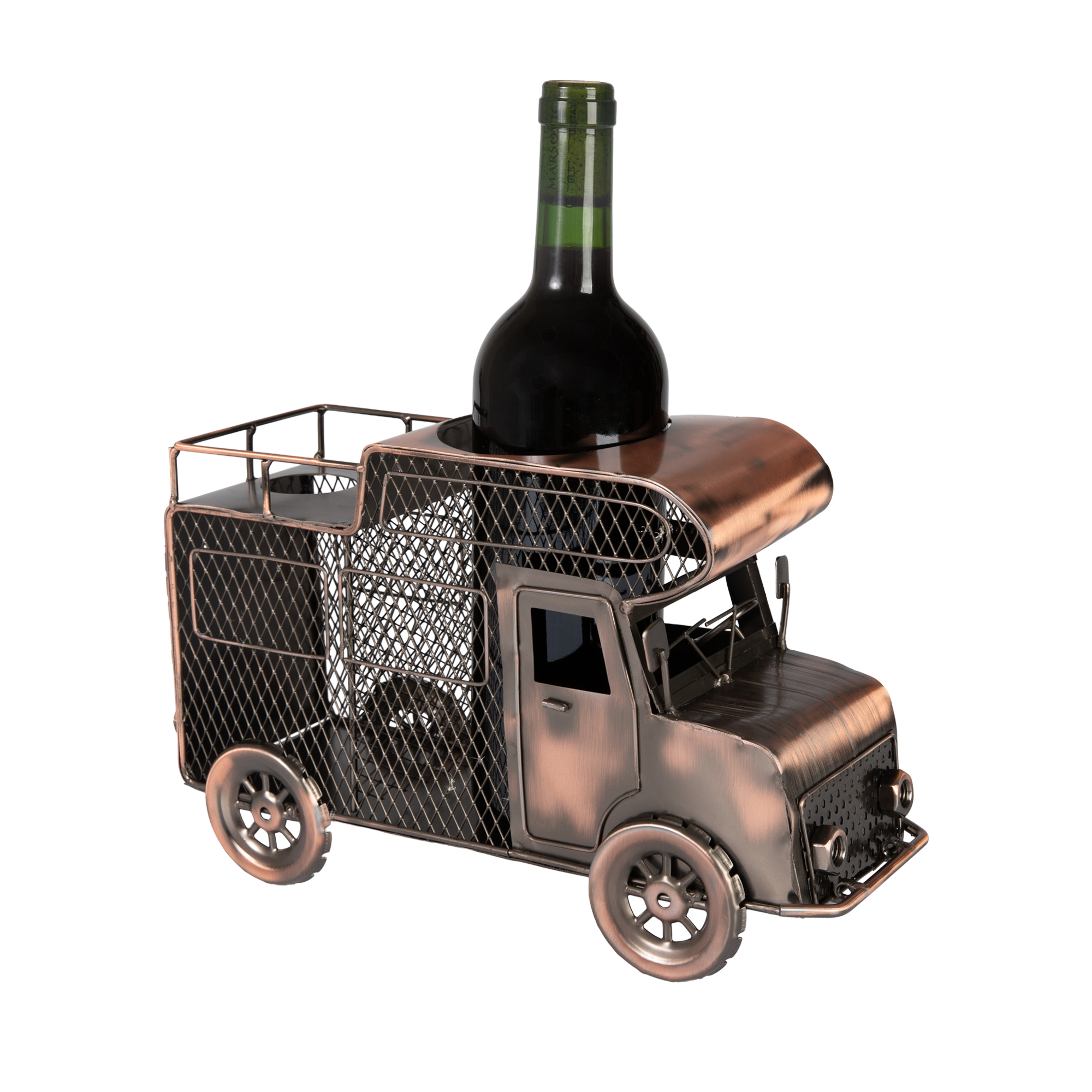 Máte koupené víno jako dárek a přemýšlíte, jak ho jedinečně zabalit? Vyměňte klasickou dárkovou tašku za designový stojan na láhev v motivu turistického auta, který je i netradičním bytovým doplňkem, jež v interiéru zaujme. Univerzální velikost stojanu zajišťuje, že se do stojanu vejde většina lahví běžných rozměrů. Materiál: kov Průměr otvoru na láhev: 9 cm Přibližné rozměry stojanu: 31,5 × 18 × 10 cm